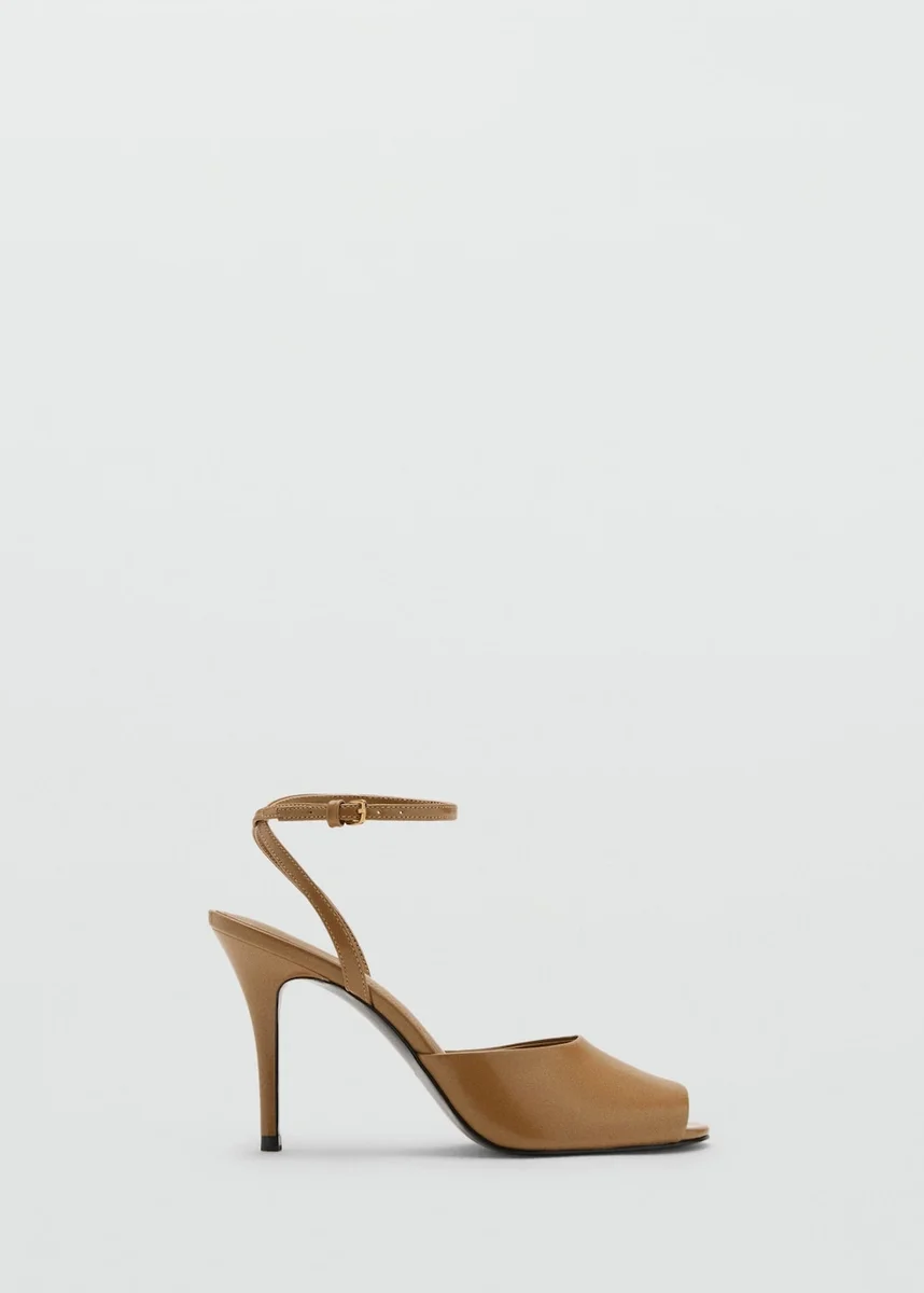 Effetto pelle. Punta aperta. Tacco a imbuto. Altezza tacco: 10 cm. Chiusura con fibbia alla caviglia. Esclusiva online