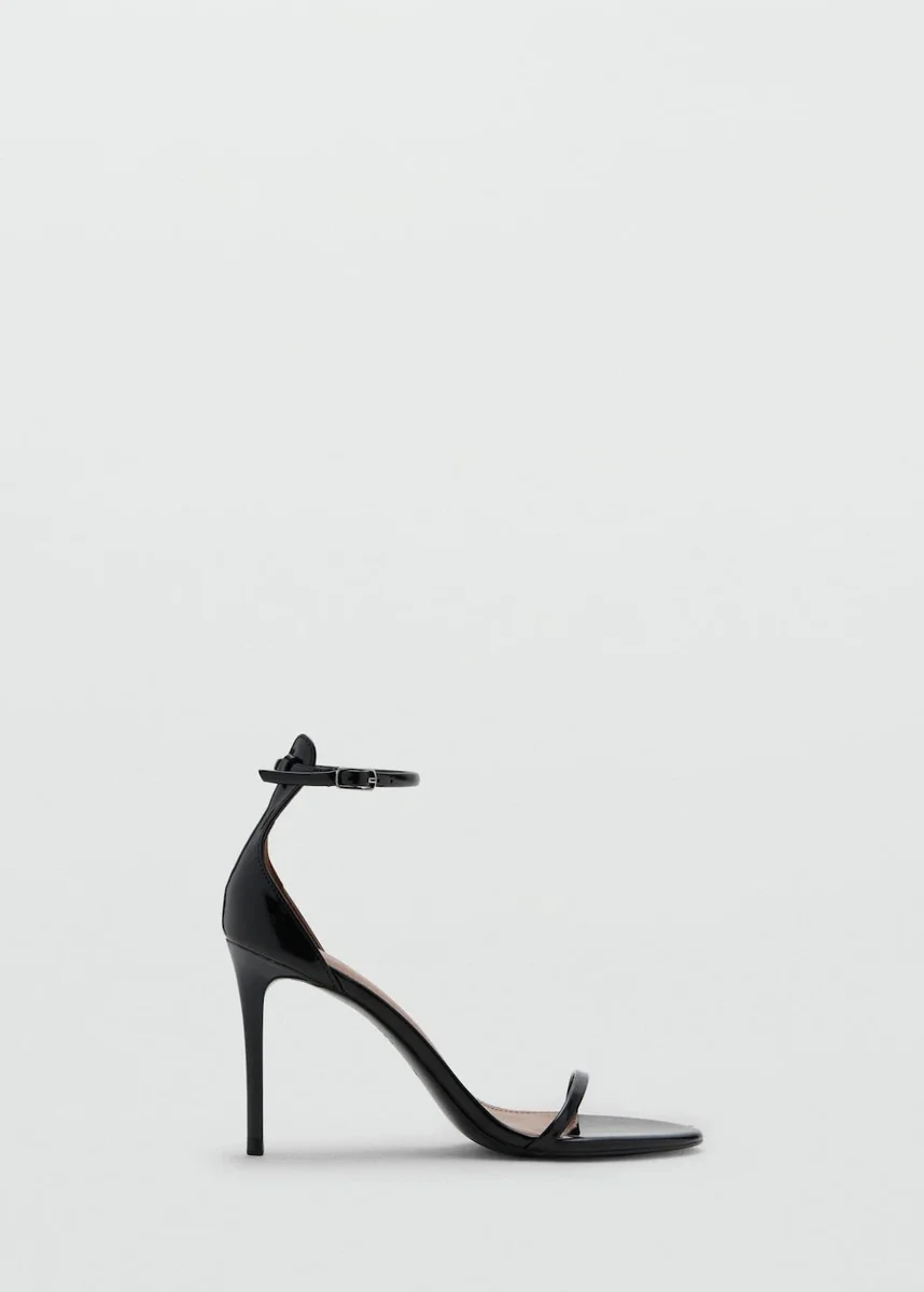 Effetto vernice. Design con cinturini. Punta aperta. Tacco a spillo. Chiusura con cinturino alla caviglia con fibbia in metallo. Tacco 9,5 cm.
