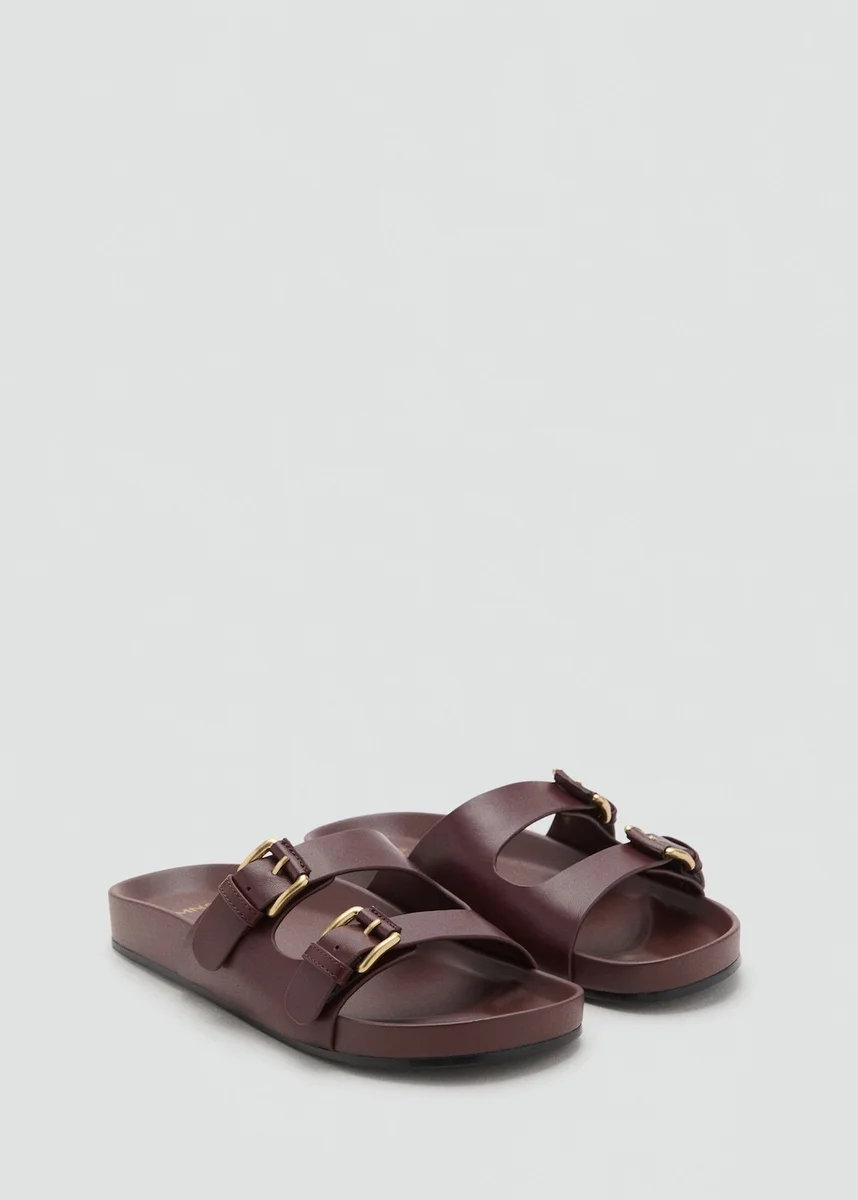 Modello piatto. Design con cinturini. Cinturini con fibbie metalliche. Punta aperta. Senza chiusura.