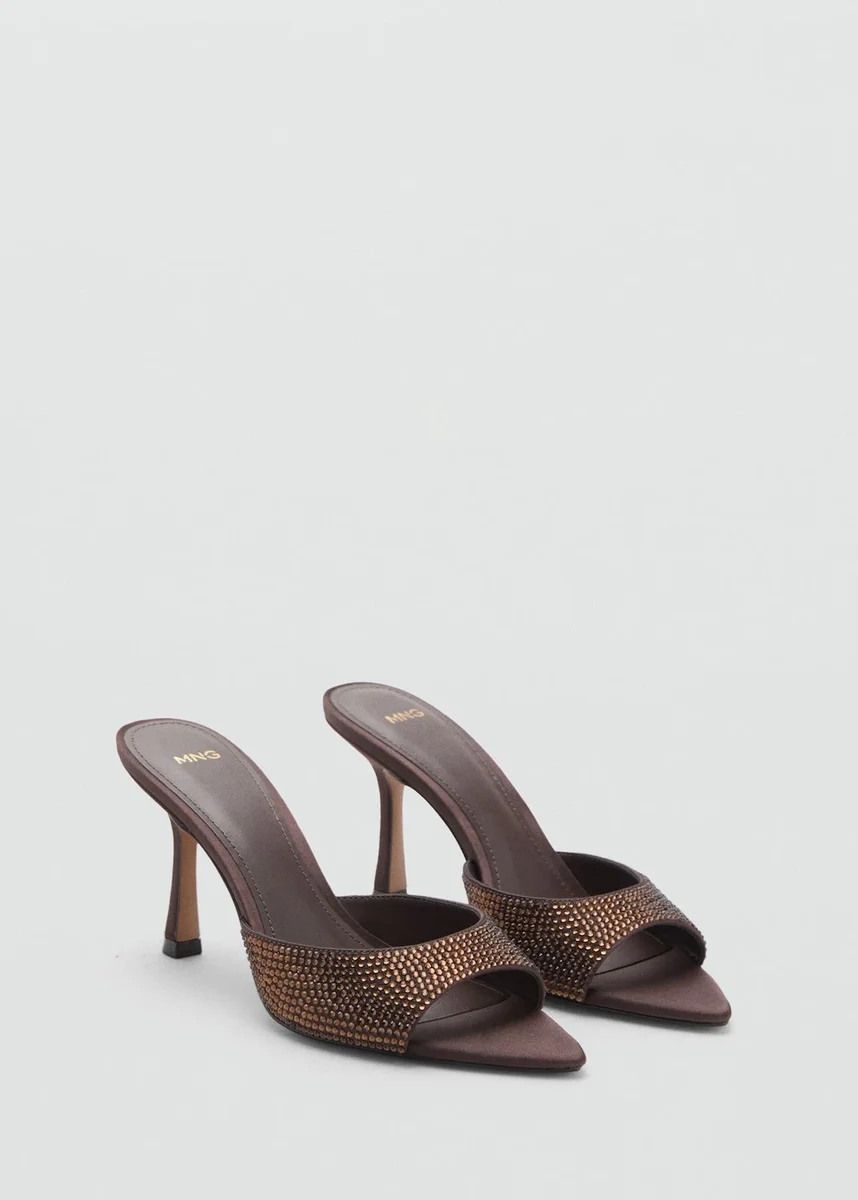 Design con cinturino posteriore. Decorazioni in strass. Punta aperta. Tacco a spillo. Senza chiusura. Tacco da 3,15 pollici
