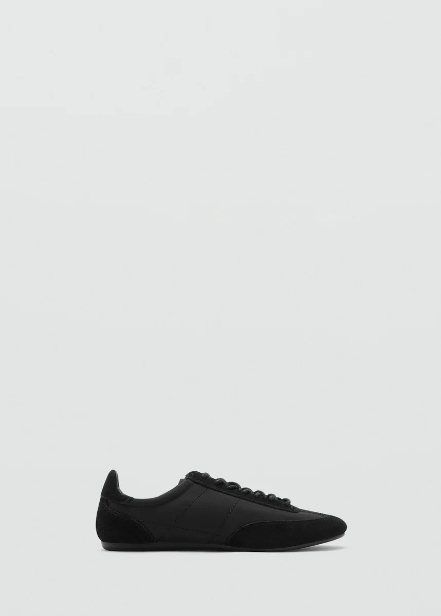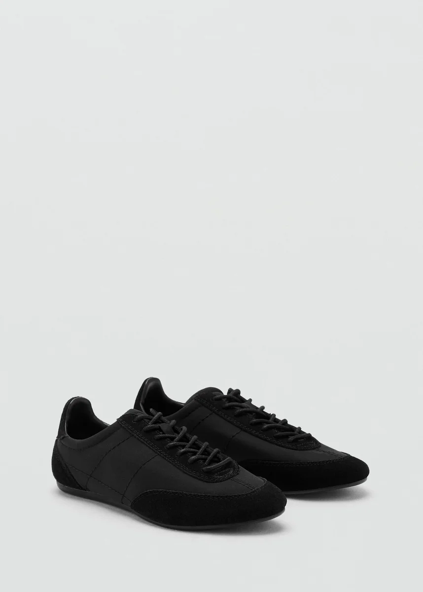 Tessuto combinato. Pelle scamosciata. Piatte. Punta arrotondata. Chiusura con lacci. Esclusiva online.