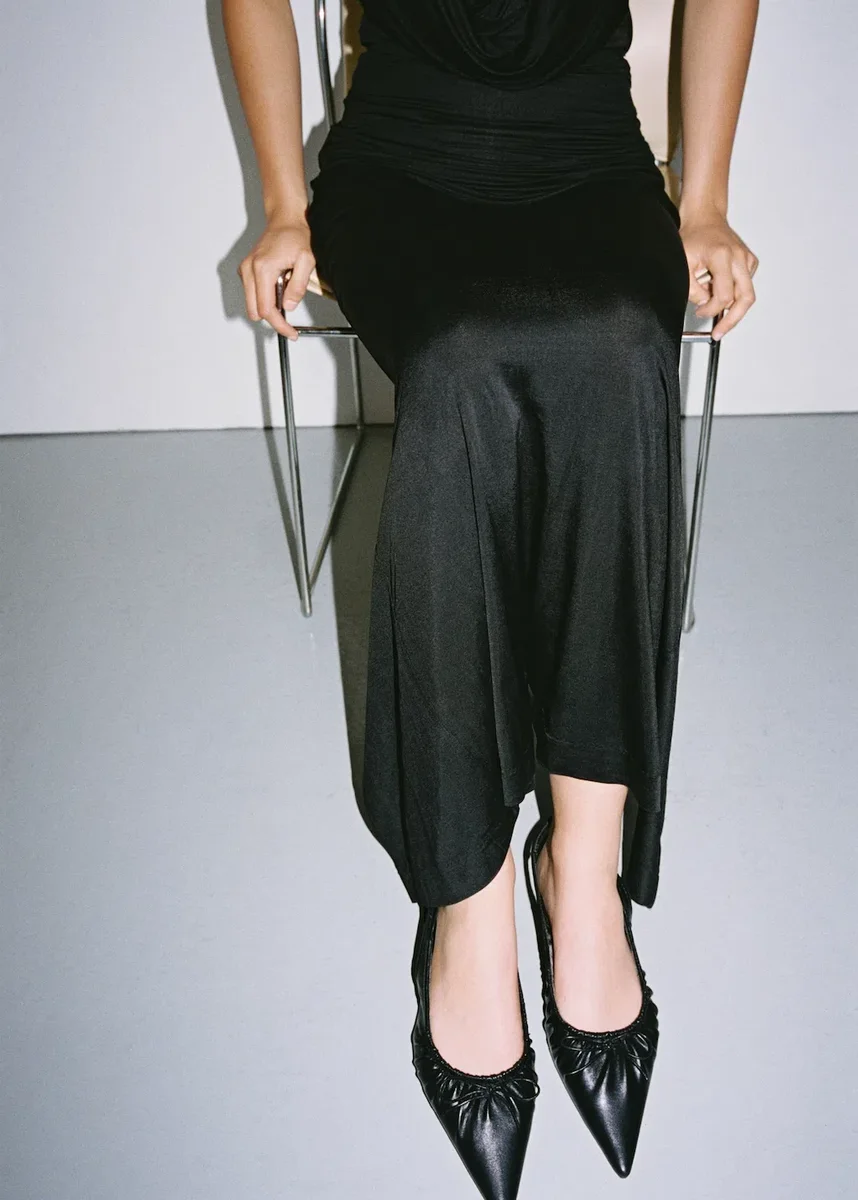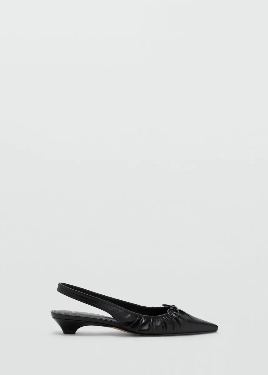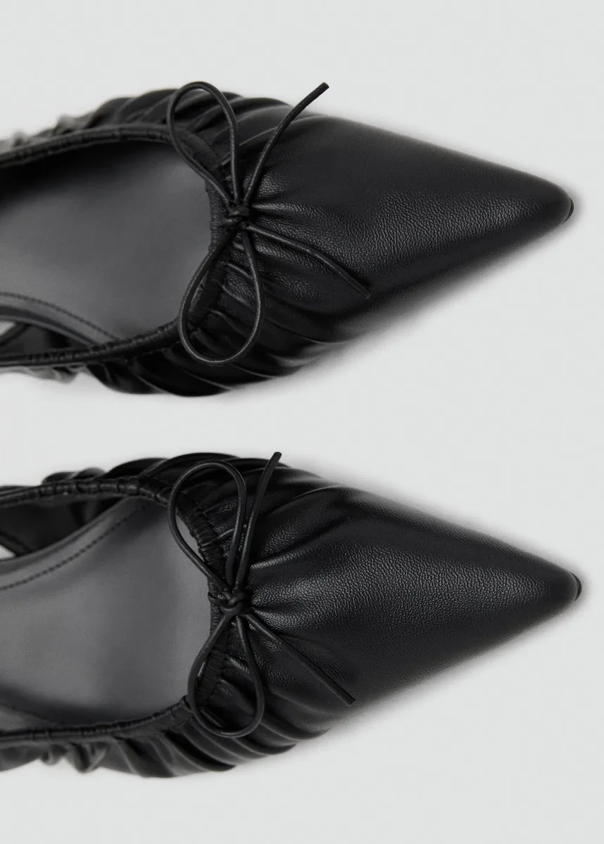 Modello slingback. Tessuto arricciato. Punta affusolata. Dettaglio fiocco. Tacco basso. Tacco da 3,5 cm. Senza chiusura. Esclusiva online