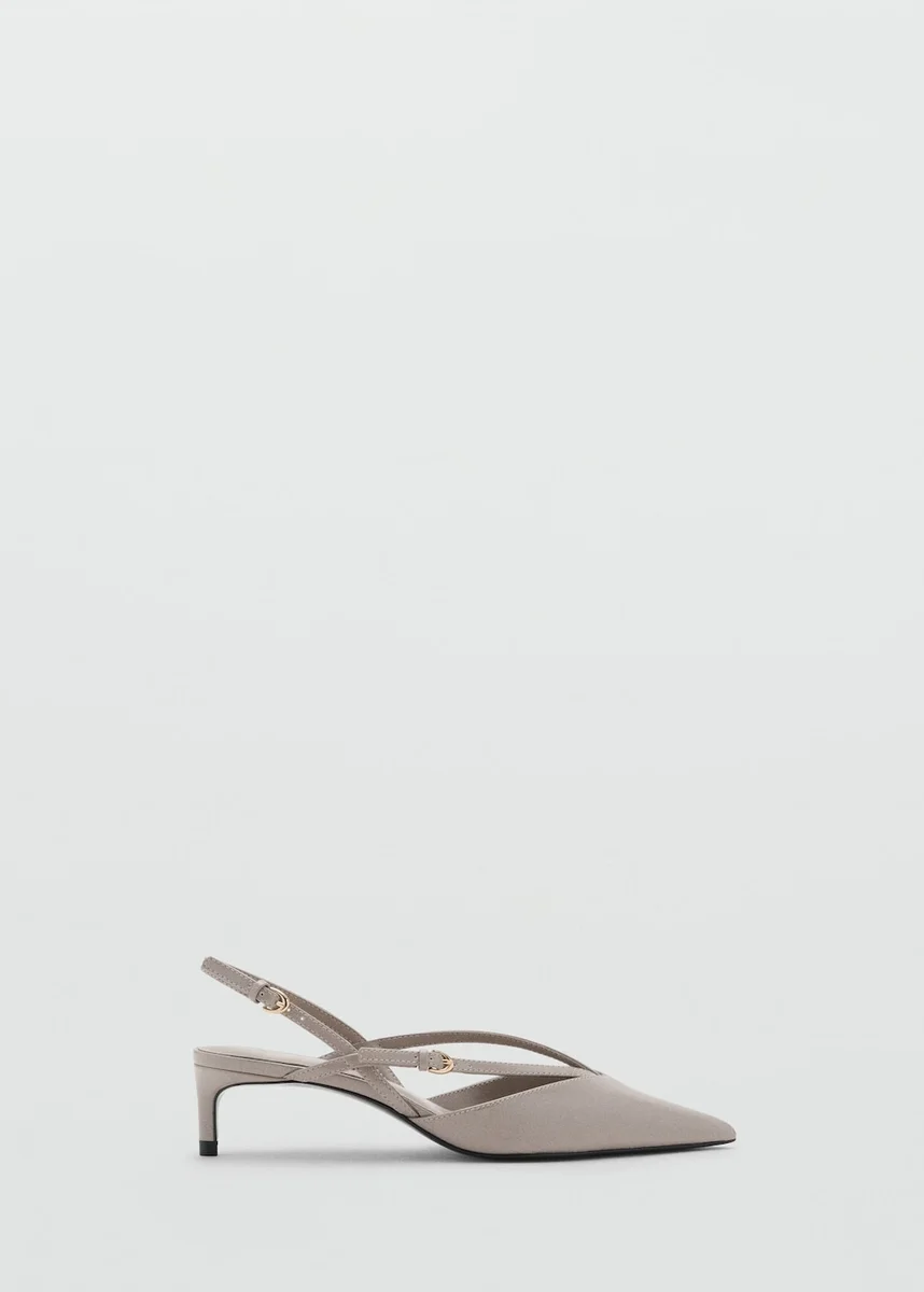 Effetto vernice. Design con cinturini. Punta affusolata. Fibbia decorativa. Tacco basso. Chiusura con fibbia alla caviglia. Tacco 5 cm.