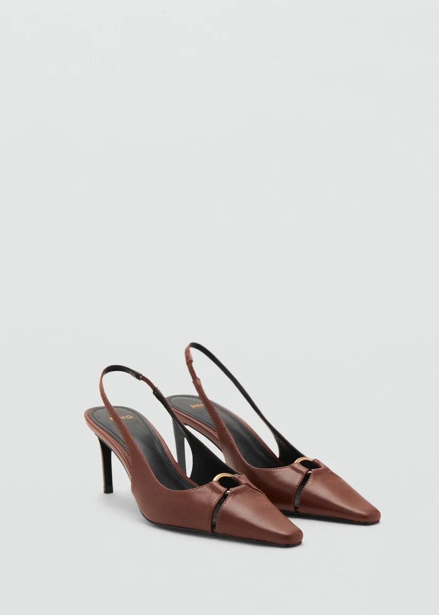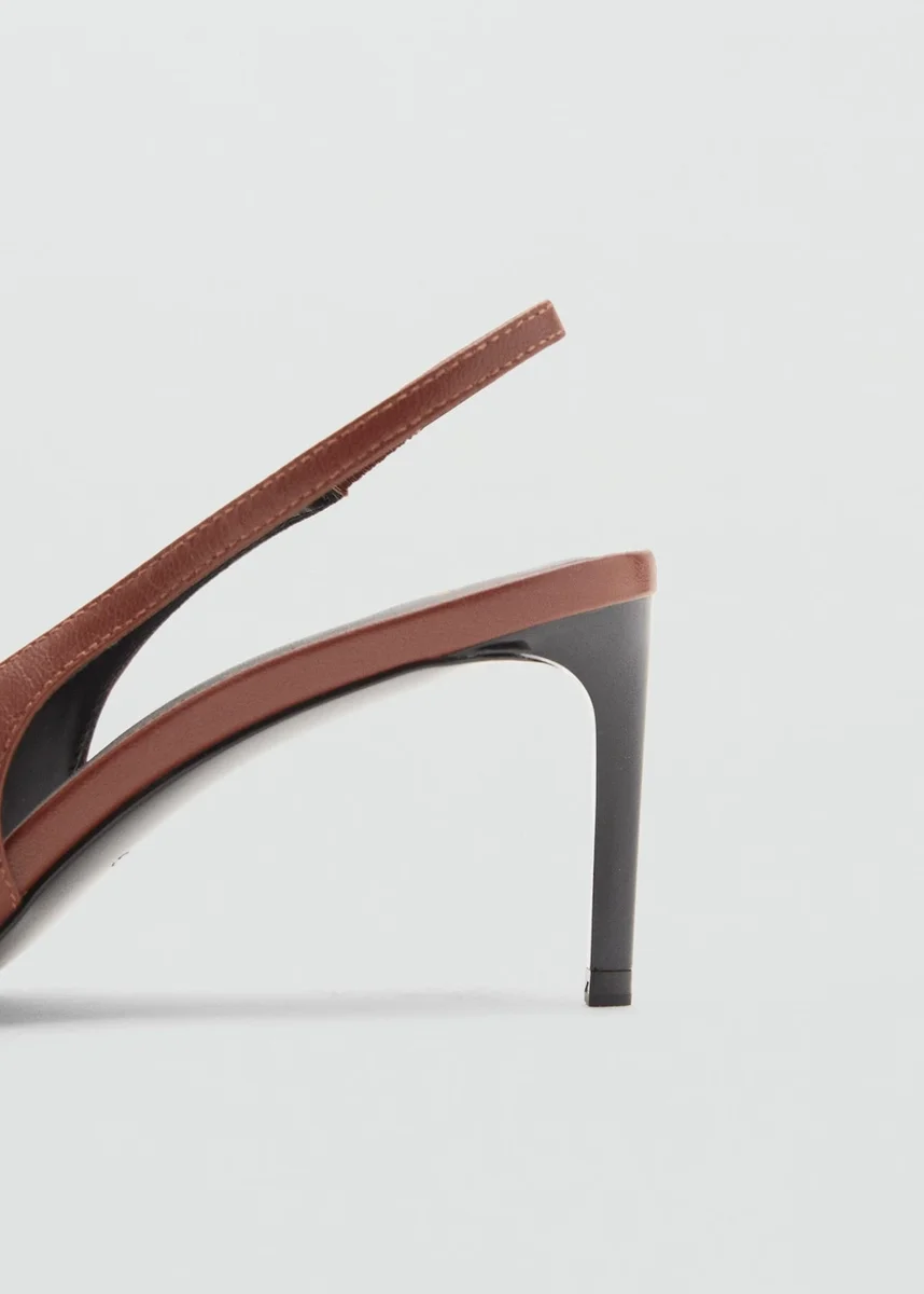 100% pelle di capra. Modello slingback. Punta affusolata. Anello metallico. Dettaglio cut-out. Tacco a spillo. Senza chiusura. Tacco 7,5 cm