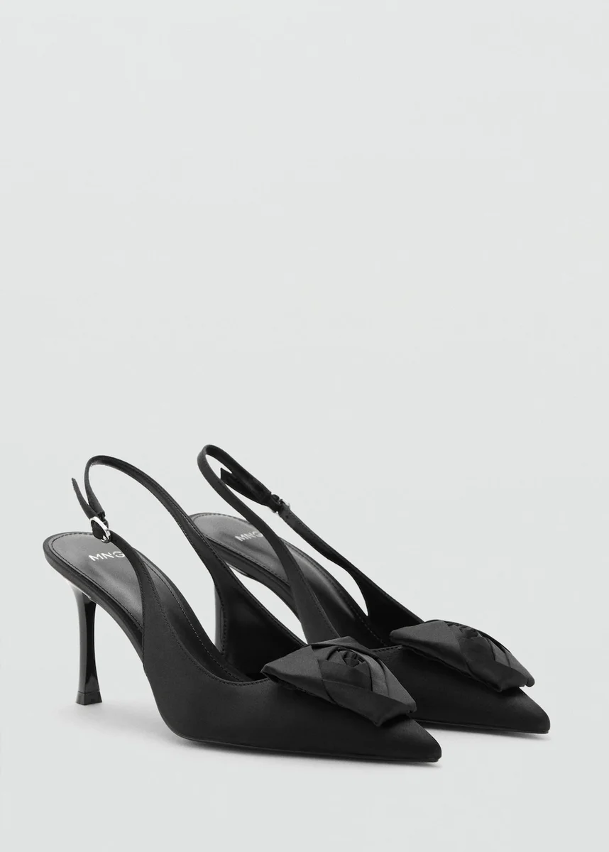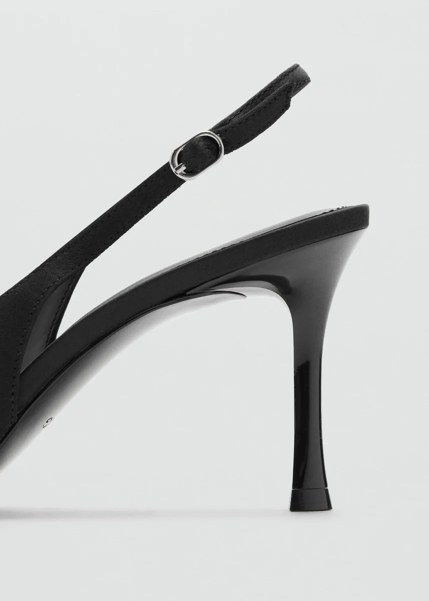 Tessuto satinato. Design slingback. Punta affusolata. Dettagli floreali. Tacco a spillo. Chiusura con fibbia alla caviglia. Tacco 9 cm.