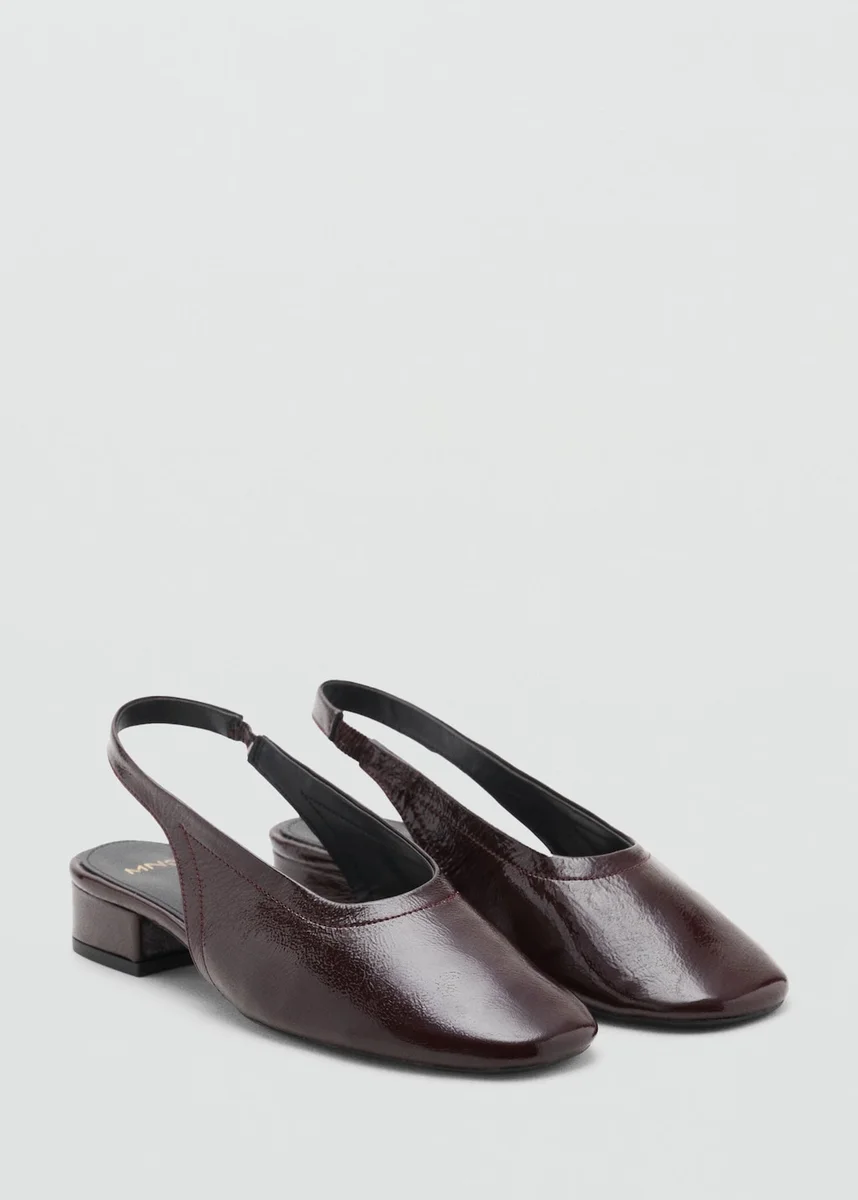 100% pelle bovina. Design slingback. Punta arrotondata. Tacco largo. Senza chiusura