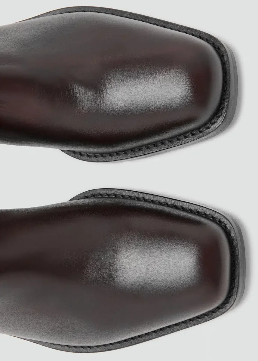 100% pelle bovina. Gamba corta. Punta quadrata. Fibbia regolabile. Tacco largo. Senza chiusura. Altezza tacco: 4 cm. Esclusiva online.