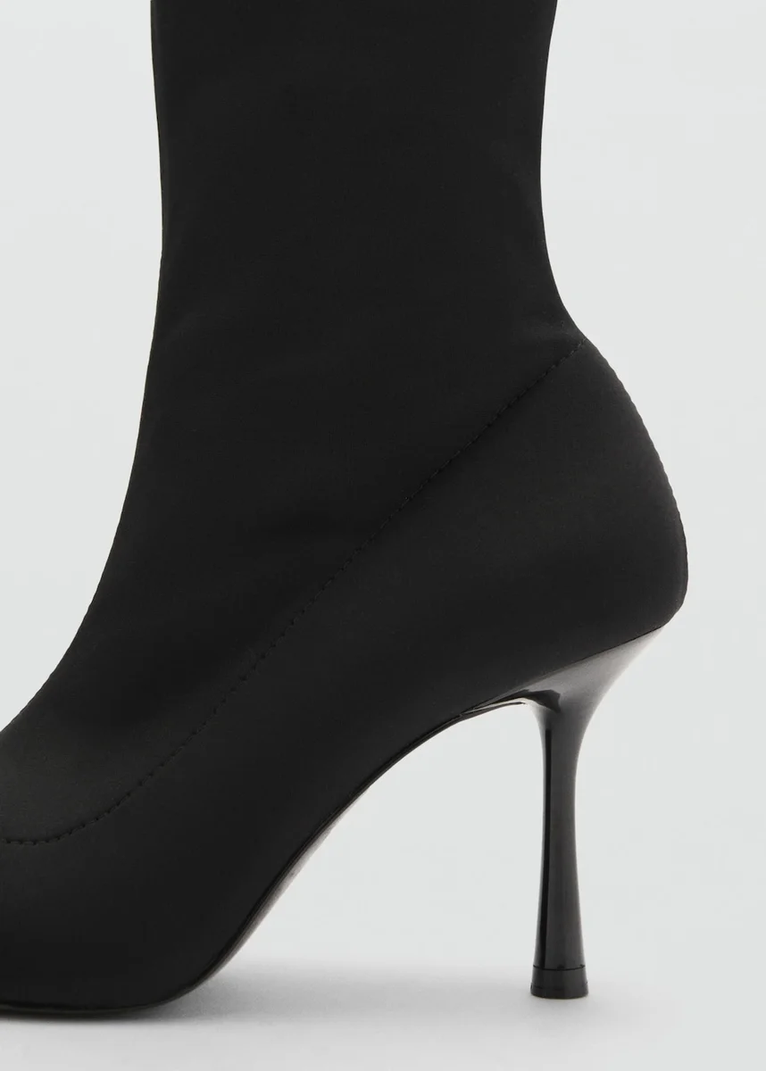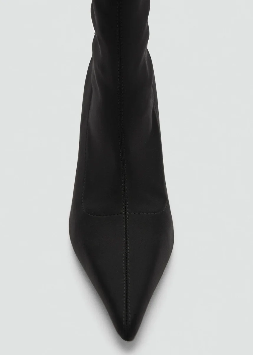 Tessuto elasticizzato. Tacco a spillo. Punta affusolata. Tacco 9 cm. Senza chiusura.