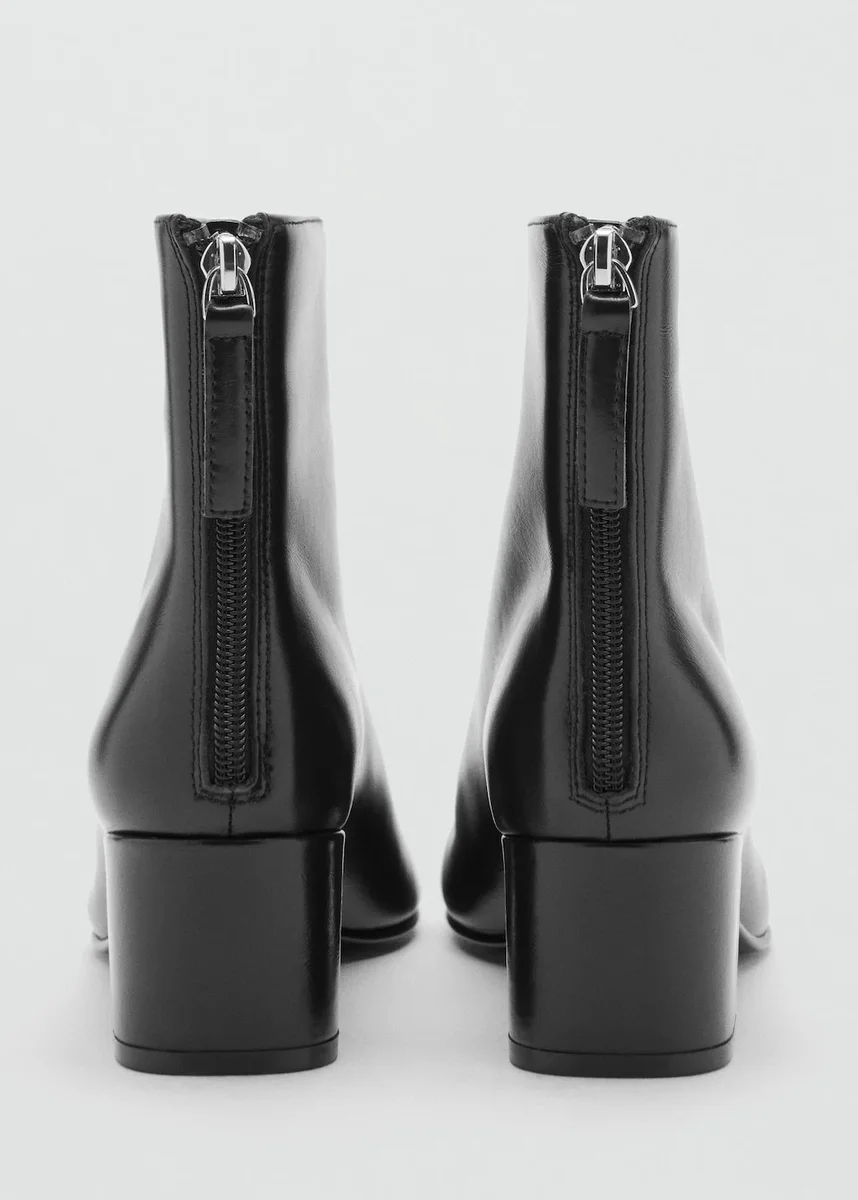 Pelle bovina. Punta arrotondata. Tacco largo. Chiusura con zip sul retro. Fodera interna. Altezza tacco: 5,5 cm. Tomaia: 94% pelle bovina, 6% poliestere. Soletta: 86% poliestere, 9% poliuretano, 5% pelle bovina. Suola: 100% termoplastica. Fissaggio suola: 100% incollato. Fodera (scarpe): 100% poliuretano.(scarpe) fodera: 100% poliuretano”],”washingRules”:[],”originCountries”:{“manufacturing”:”Cina