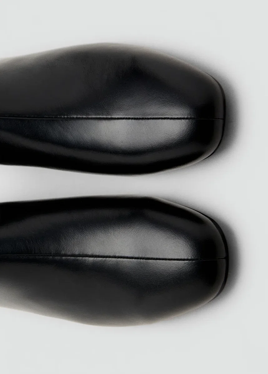Pelle bovina. Punta arrotondata. Chiusura con cerniera posteriore. Fodera interna in pelle.