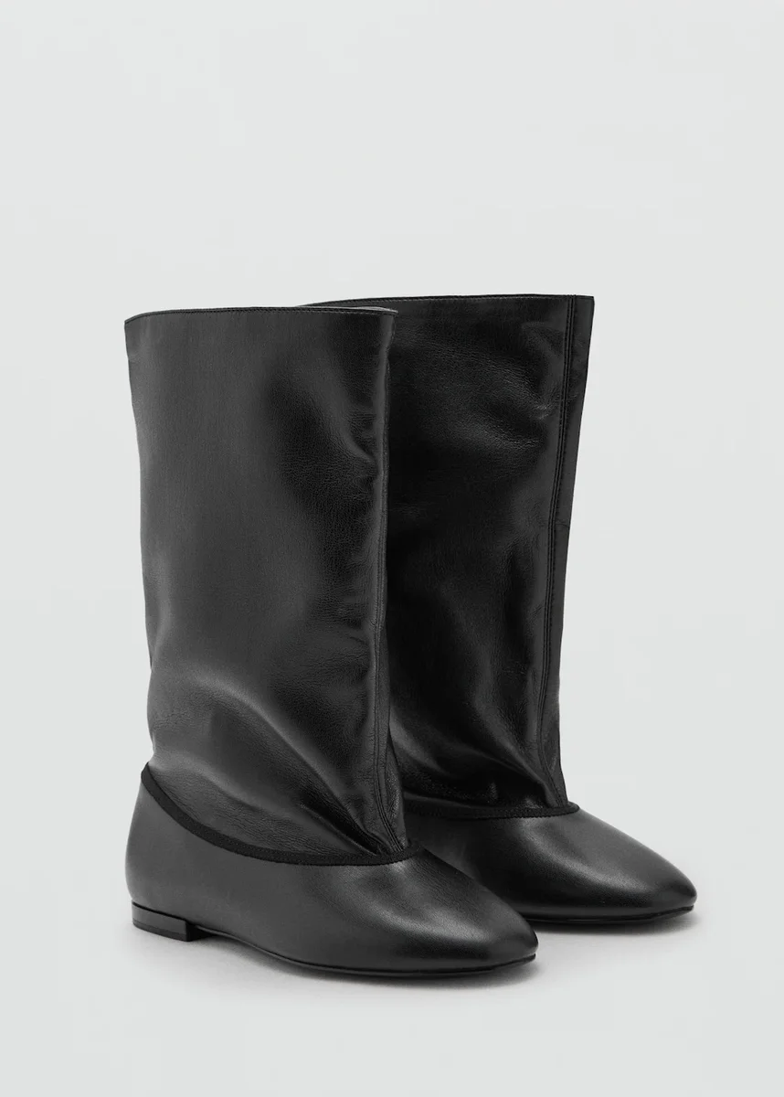 Effetto pelle. Design combinato. Piatte. Gamba larga. Senza chiusura. Esclusiva online