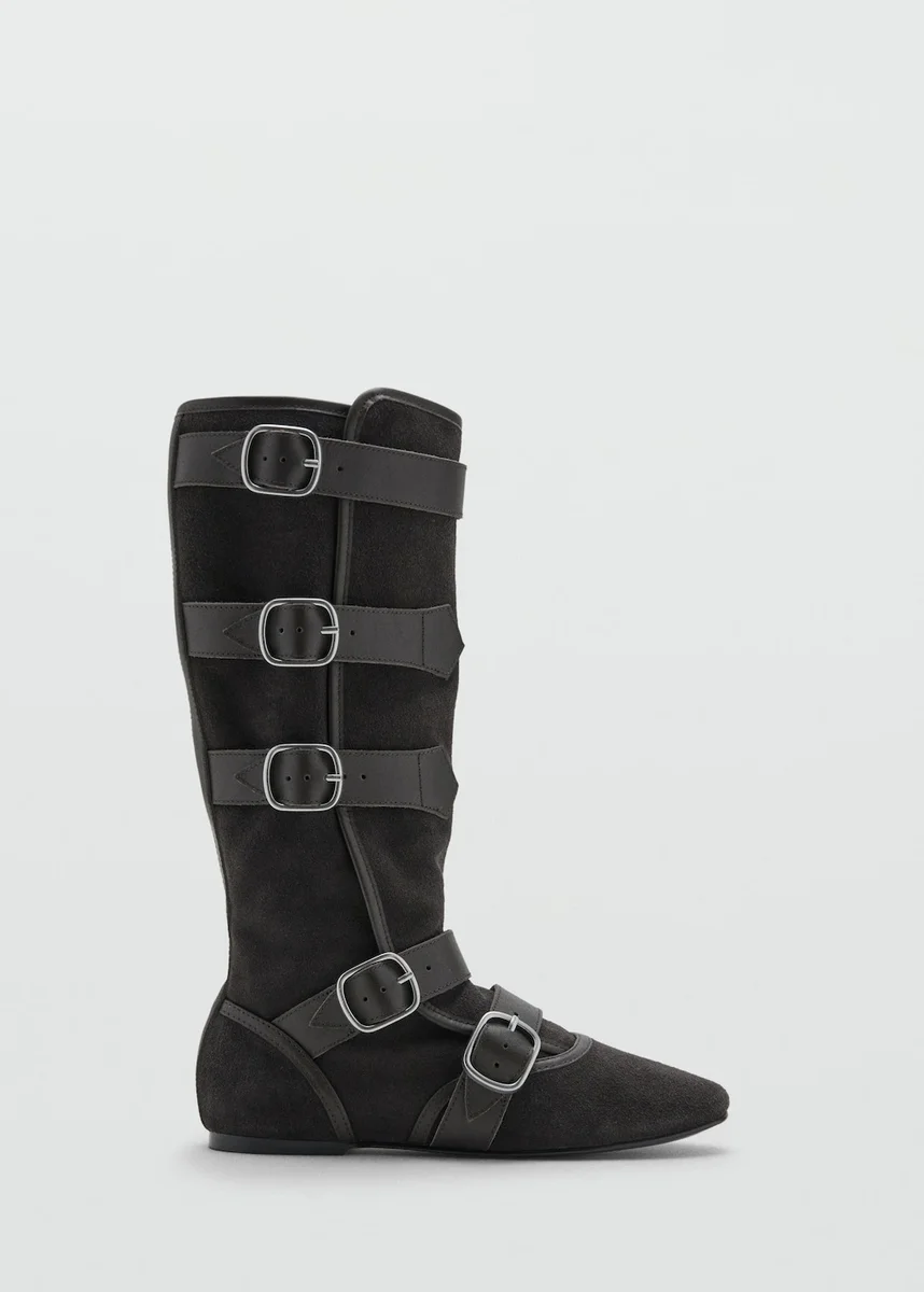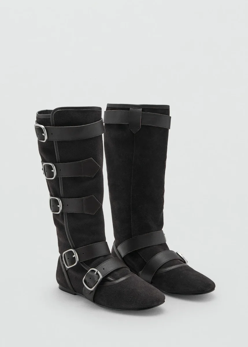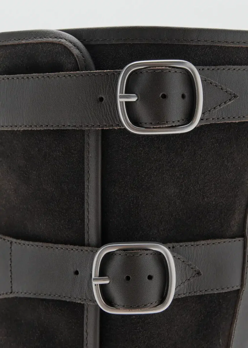 100% pelle bovina. Pelle scamosciata. Tomaia alta. Punta arrotondata. Fibbie decorative. Chiusura con fibbia. Fodera interna. Esclusiva online