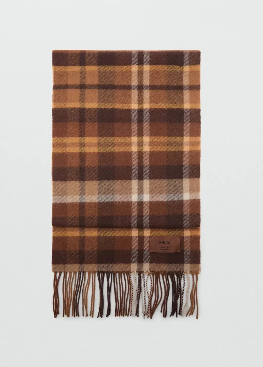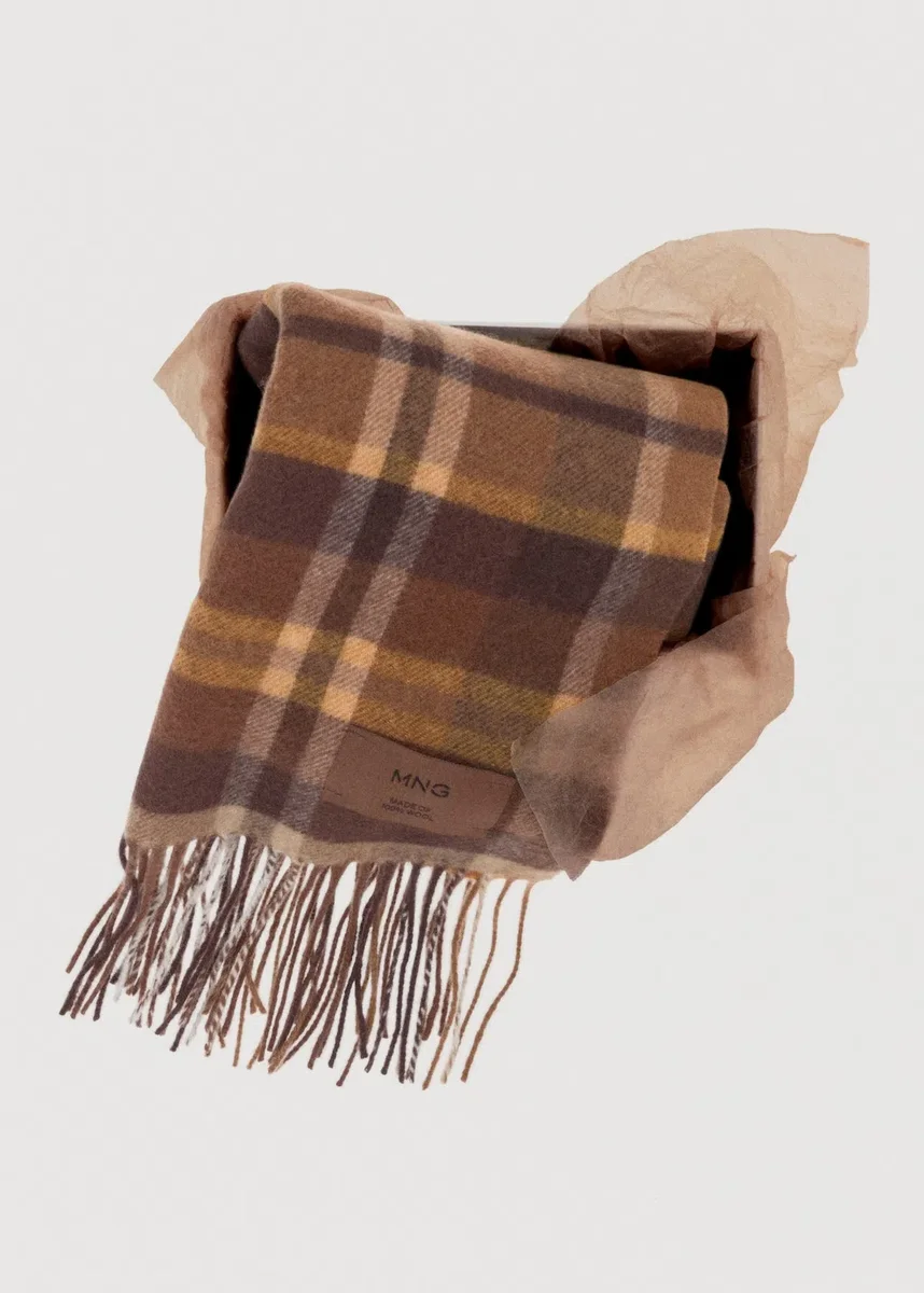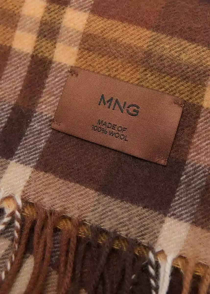 Tessuto 100% lana. Stampa a quadri. Finitura sfrangiata.