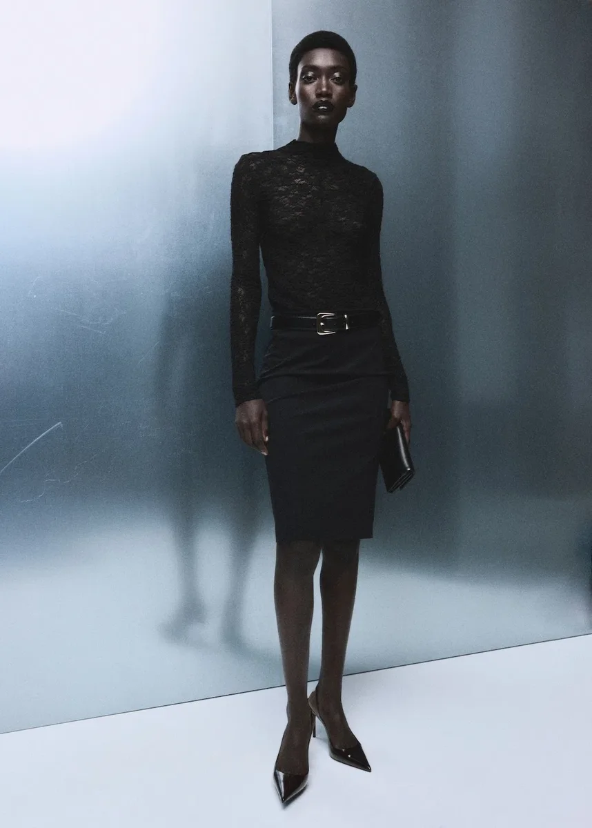 Tessuto in pizzo. Design aderente. Collo alto. Maniche lunghe. Questo capo fa parte della nostra collezione party ed eventi, pensata per valorizzare il tuo look nelle occasioni speciali.