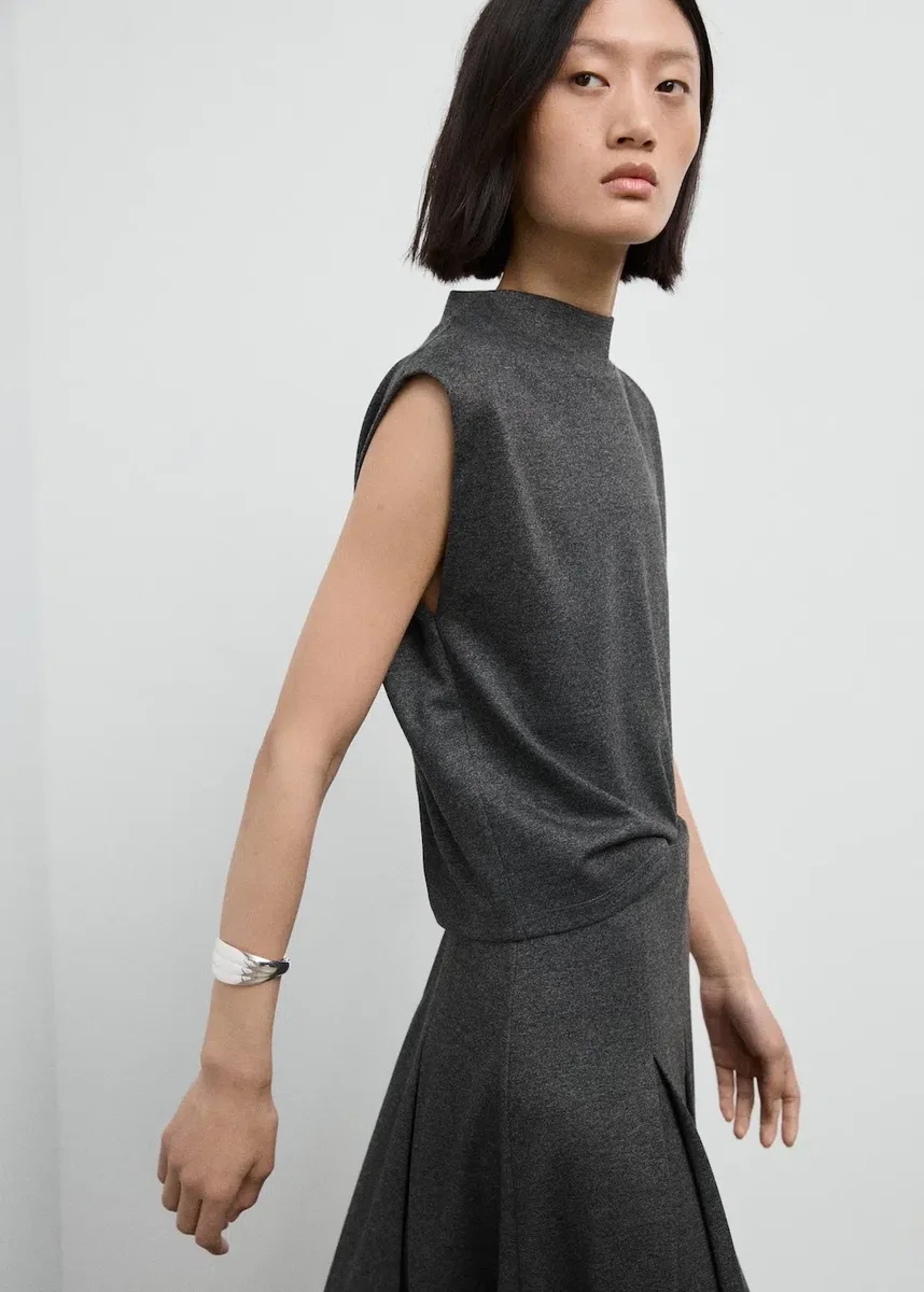 Con un design dritto e un collo a imbuto, questo top presenta spalline larghe che offrono comfort. Senza chiusura. Abbinabile a una gonna coordinata