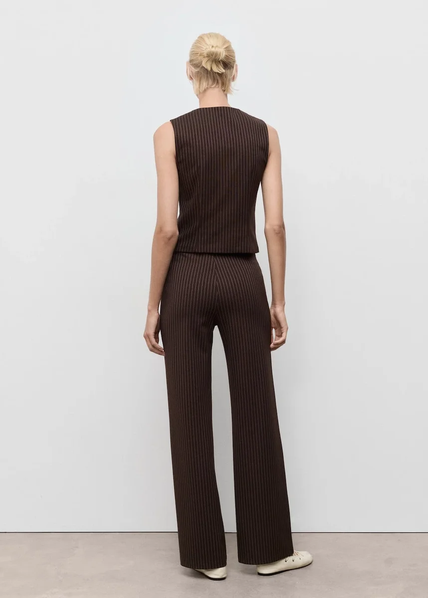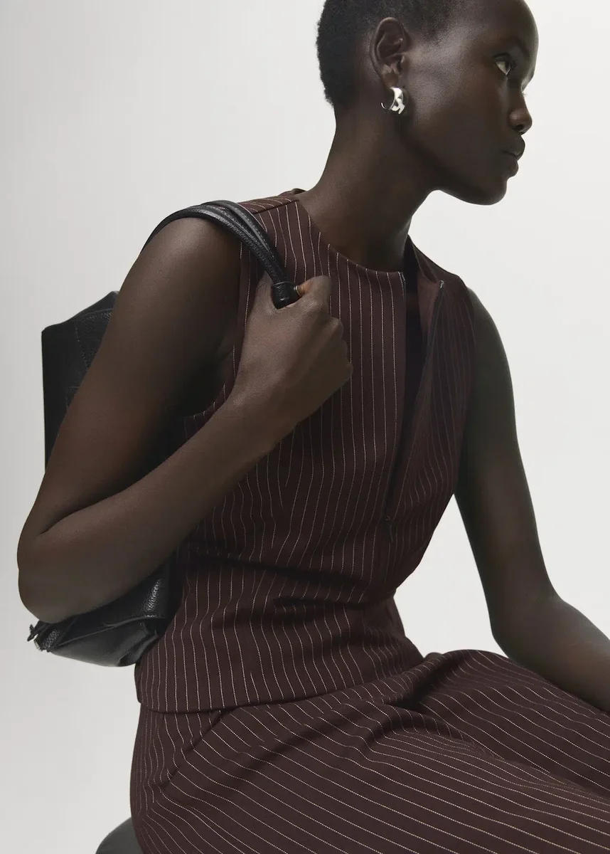 Con un design aderente, questo top presenta una scollatura rotonda e spalline larghe. La chiusura con cerniera frontale completa il total look, conferendogli un aspetto contemporaneo. È abbinato a pantaloni coordinati