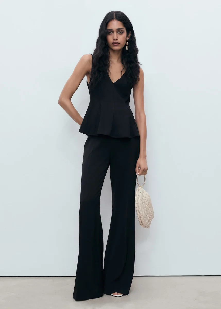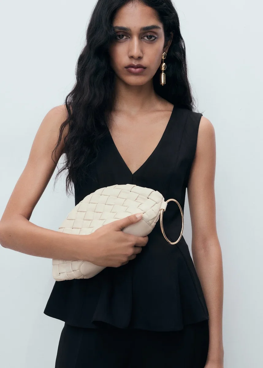 Realizzato in tessuto misto lyocell, questo top presenta un taglio peplum con scollo a V e spalline larghe. Include una chiusura con cerniera laterale e una fodera interna
