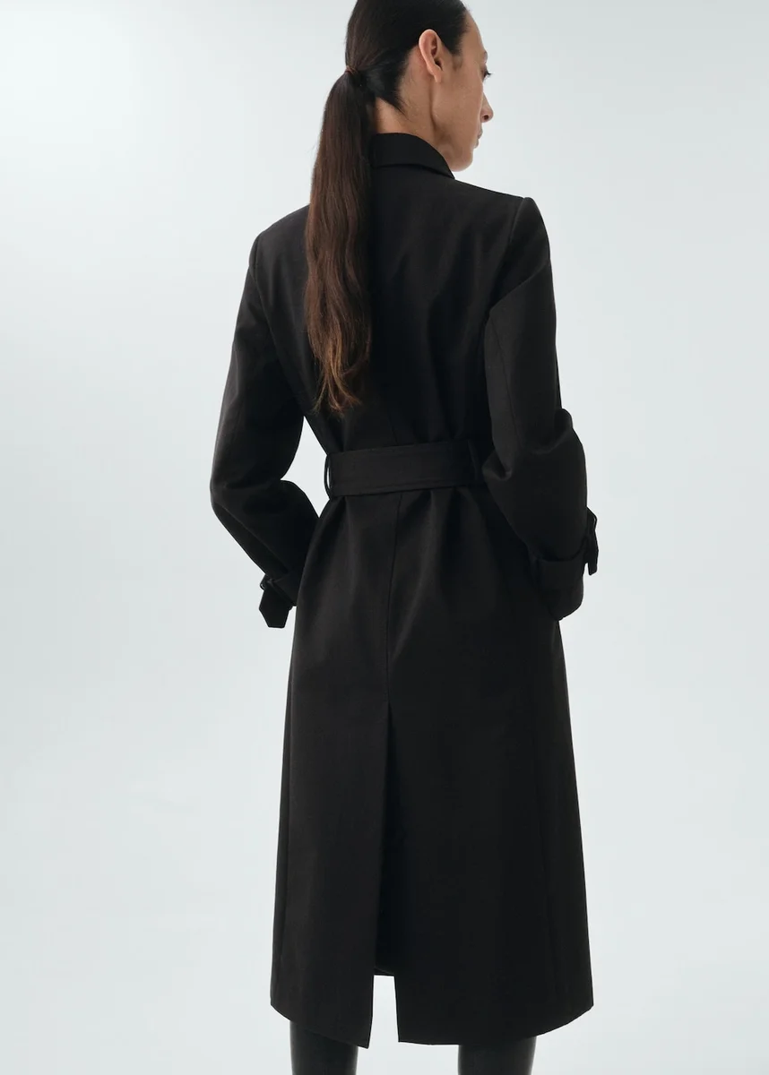 Realizzato in tessuto 100% cotone, questo modello lungo e dritto presenta un collo camicia e maniche lunghe con polsini abbottonati. Include una cintura in stile vestaglia, due tasche laterali e chiusura frontale con bottoni. Il modello nero è un’esclusiva online. Collezione Selection