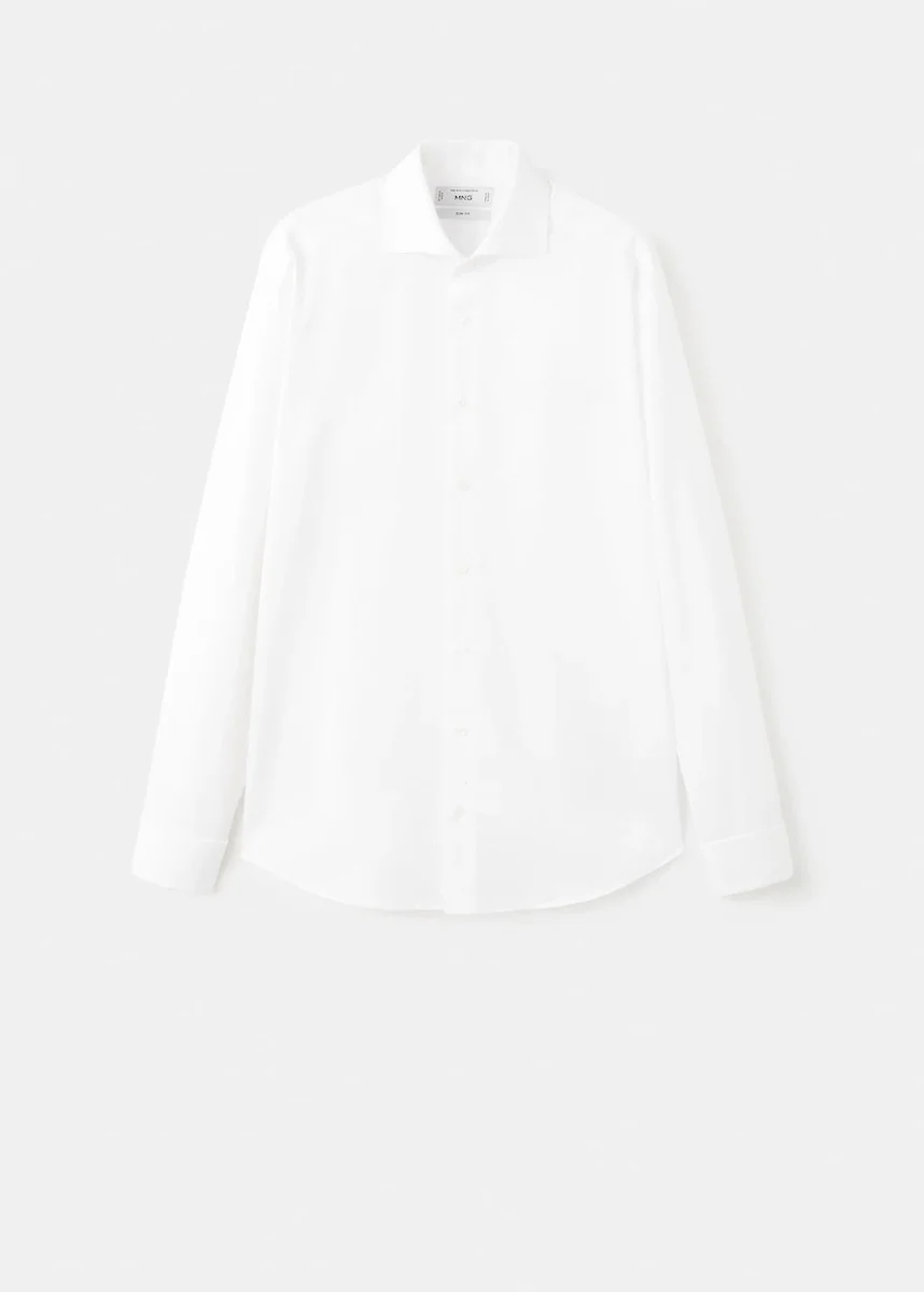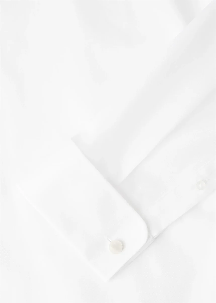 Vestibilità slim. Twill di cotone. Colletto cutaway. Doppio polsino con gemelli. Manica lunga con bottoni. Chiusura frontale con bottoni. Orlo arrotondato