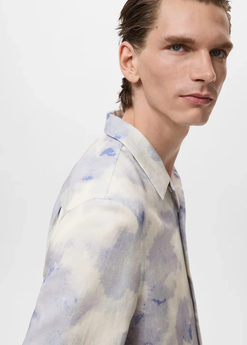 Tessuto in viscosa, lino e cotone. Vestibilità regolare. Collo alla coreana. Chiusura con bottoni sul davanti. Maniche corte. Orlo dritto