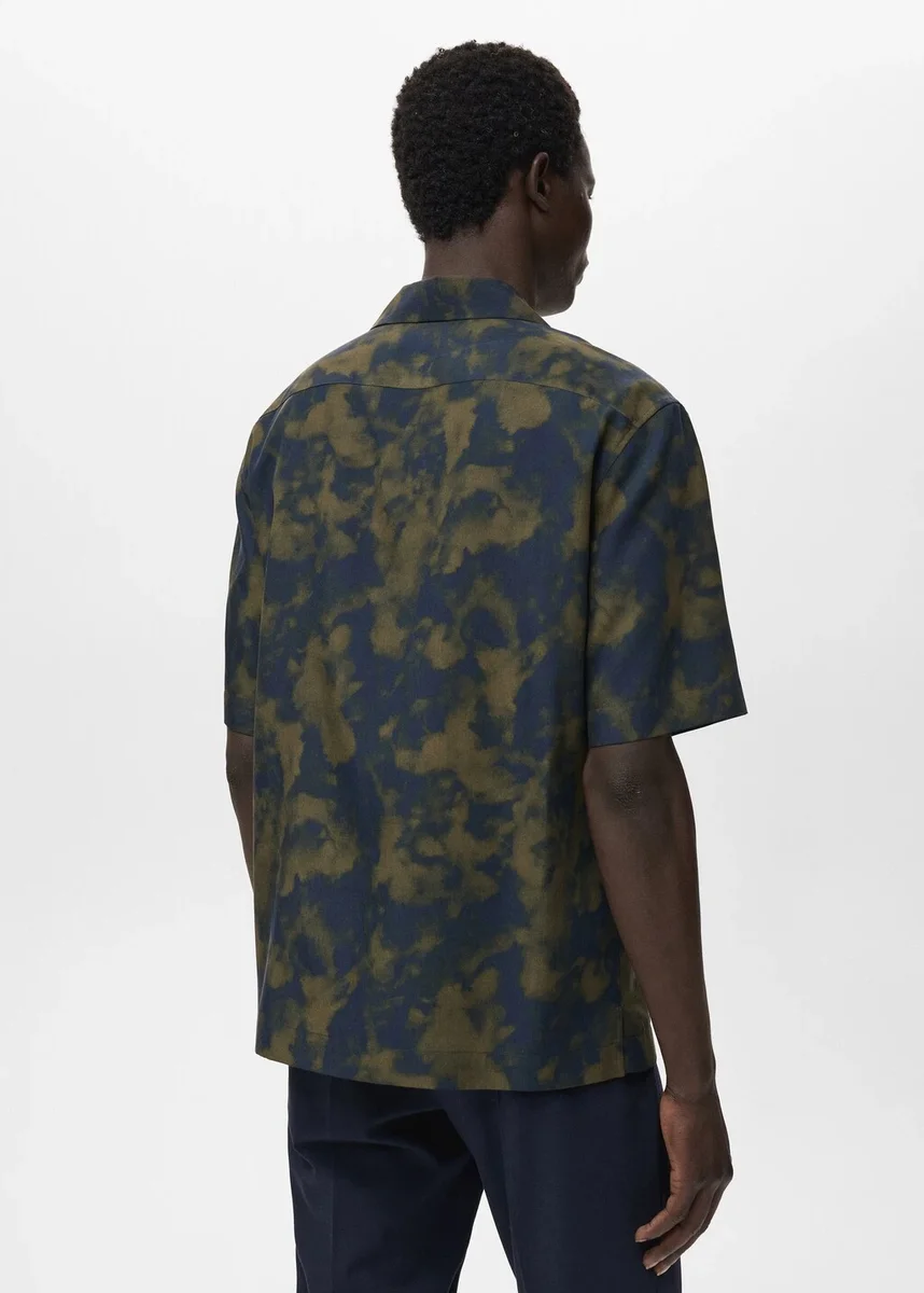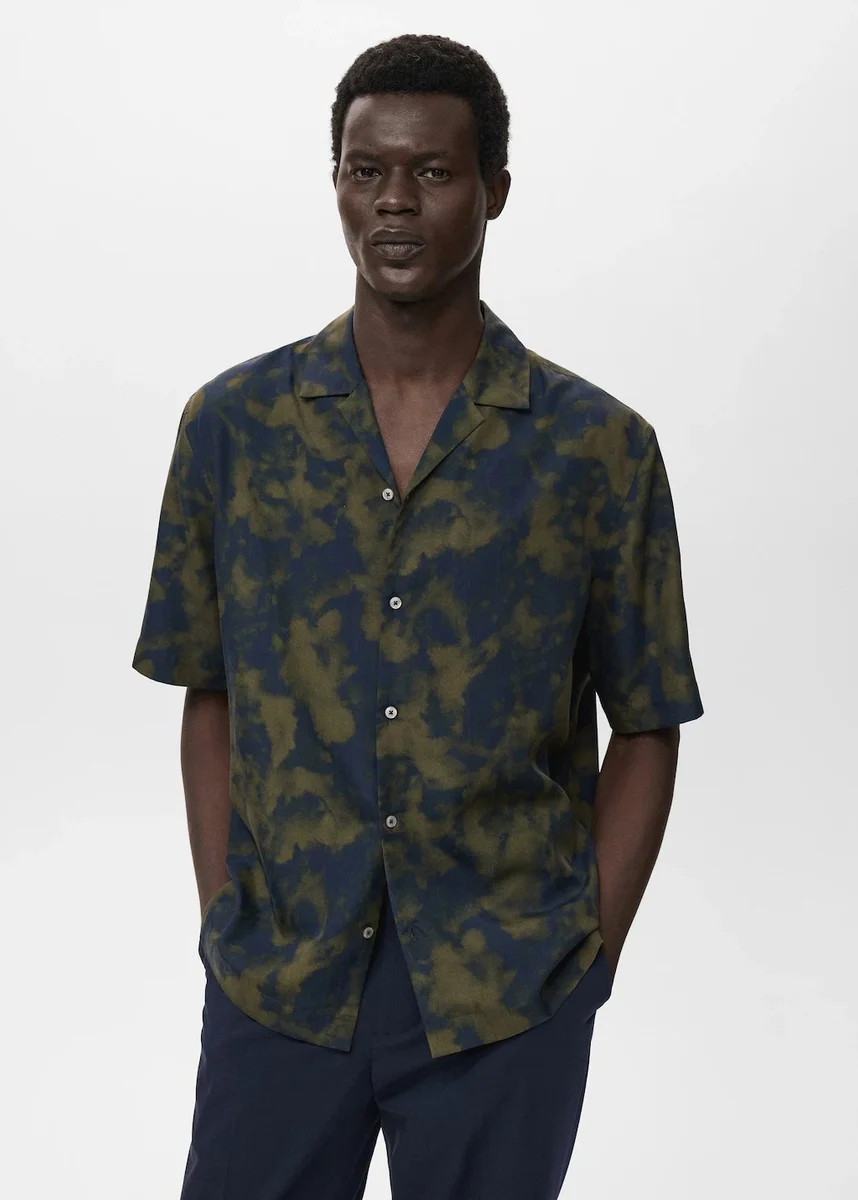 Tessuto fluido in viscosa. Vestibilità regolare. Motivo stampato. Colletto alla coreana. Chiusura con bottoni sul davanti. Maniche corte