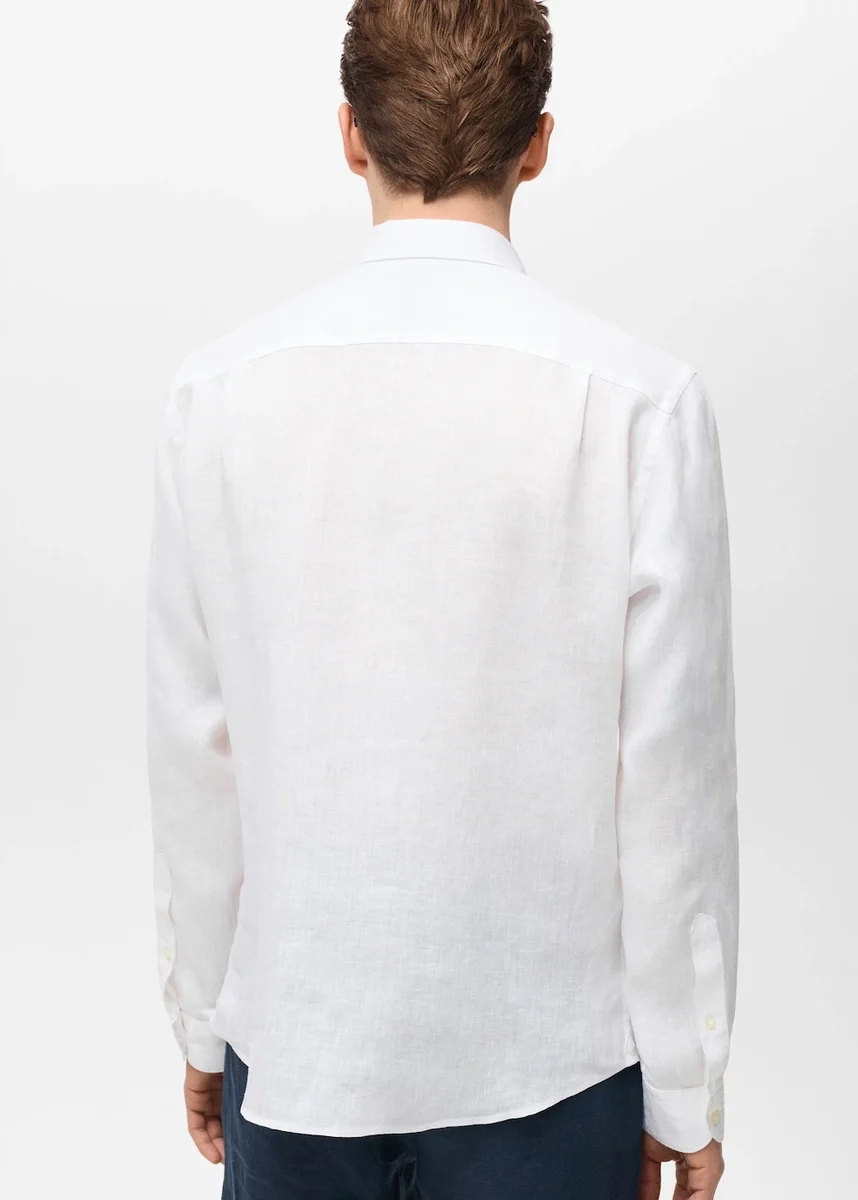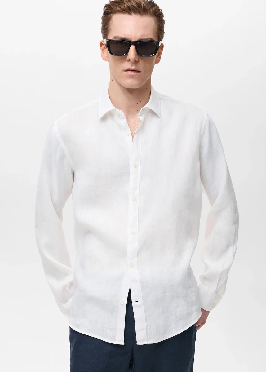 Vestibilità regolare. Tessuto 100% lino. Colletto camicia. Chiusura frontale con bottoni. Maniche lunghe con polsini abbottonati. Dettaglio pinces sul retro. Orlo arrotondato. Il colore azzurro è un’esclusiva online. Il modello blu porcellana è un’esclusiva online.