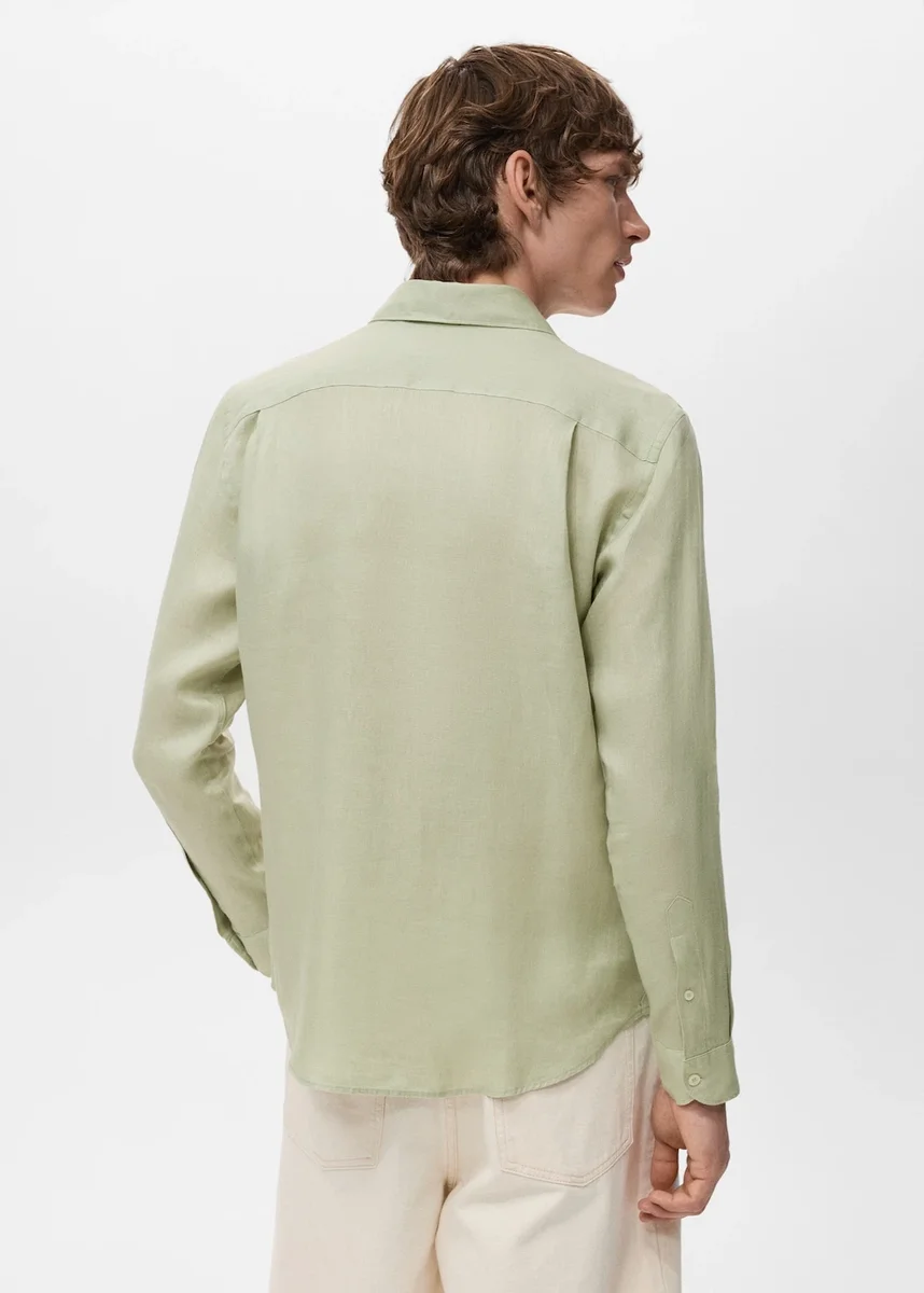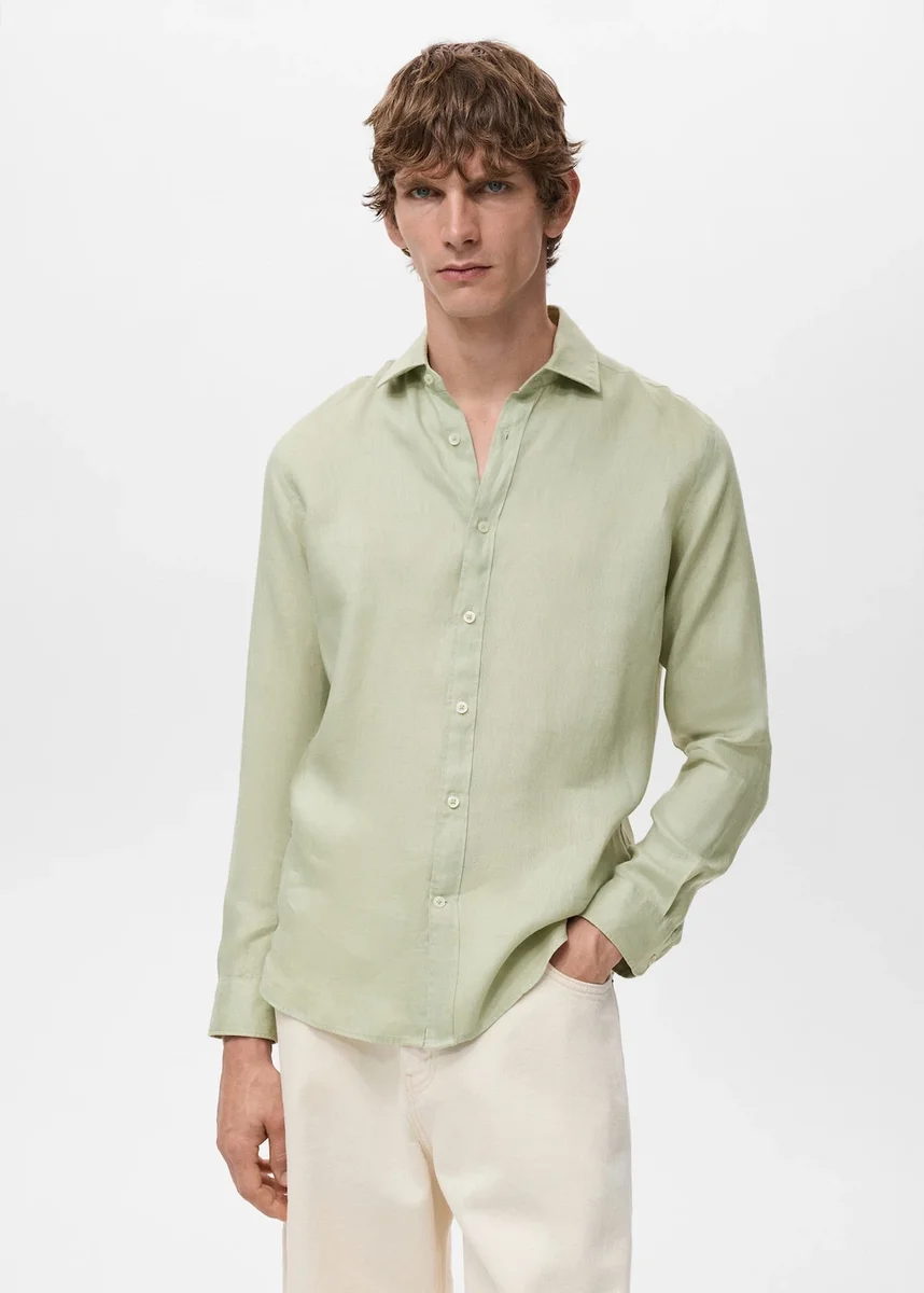 Vestibilità regolare. Tessuto 100% lino. Colletto camicia. Chiusura frontale con bottoni. Maniche lunghe con polsini abbottonati. Dettaglio pinces sul retro. Orlo arrotondato. Il colore azzurro è un’esclusiva online. Il modello blu porcellana è un’esclusiva online.