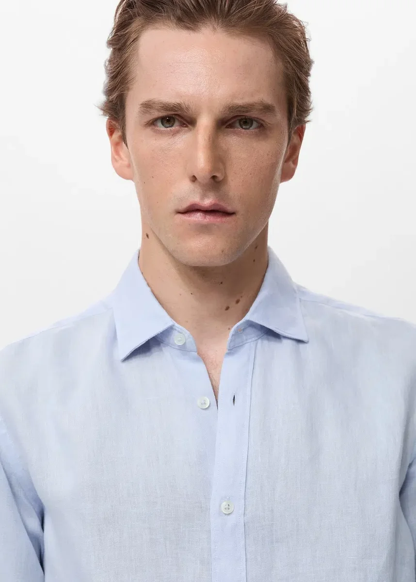 Vestibilità regolare. Tessuto 100% lino. Colletto camicia. Chiusura frontale con bottoni. Maniche lunghe con polsini abbottonati. Dettaglio pinces sul retro. Orlo arrotondato. Il colore azzurro è un’esclusiva online. Il modello blu porcellana è un’esclusiva online.