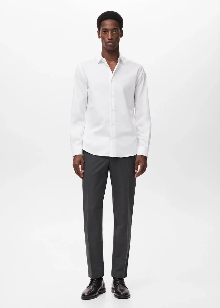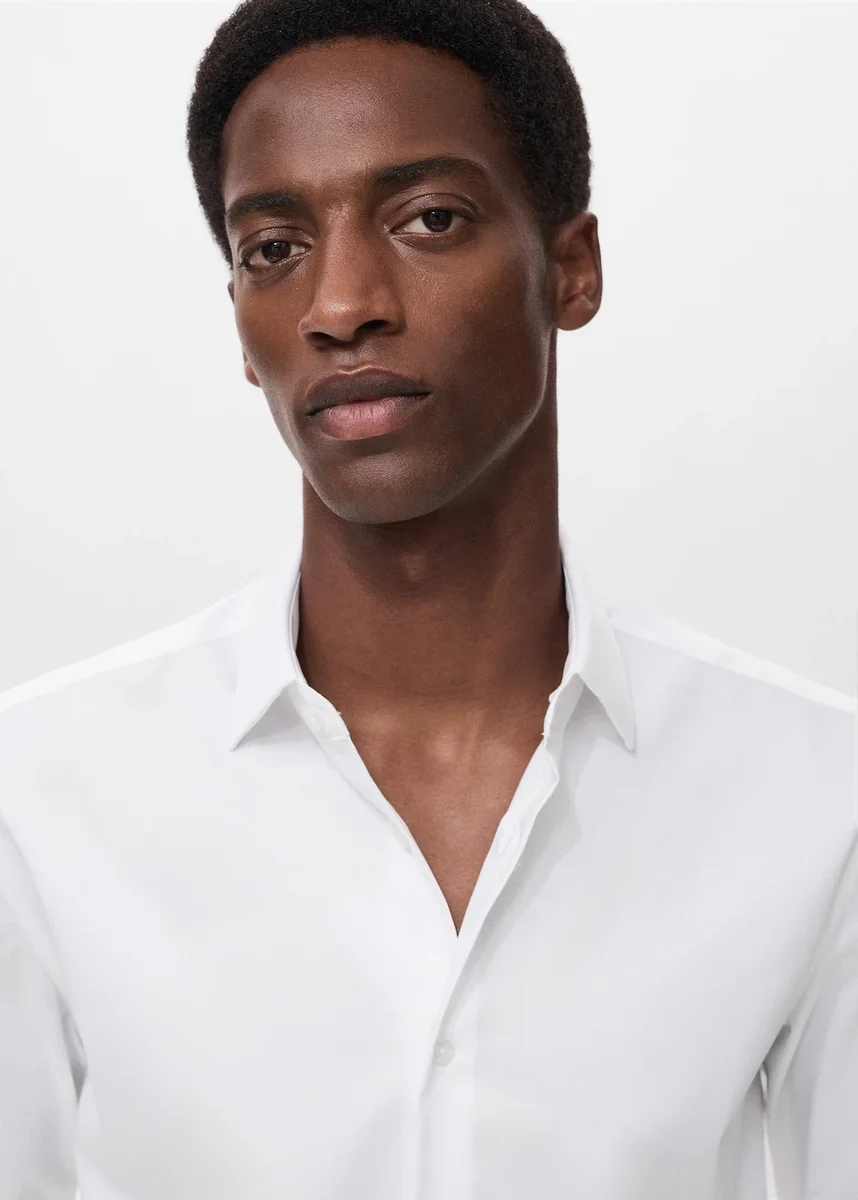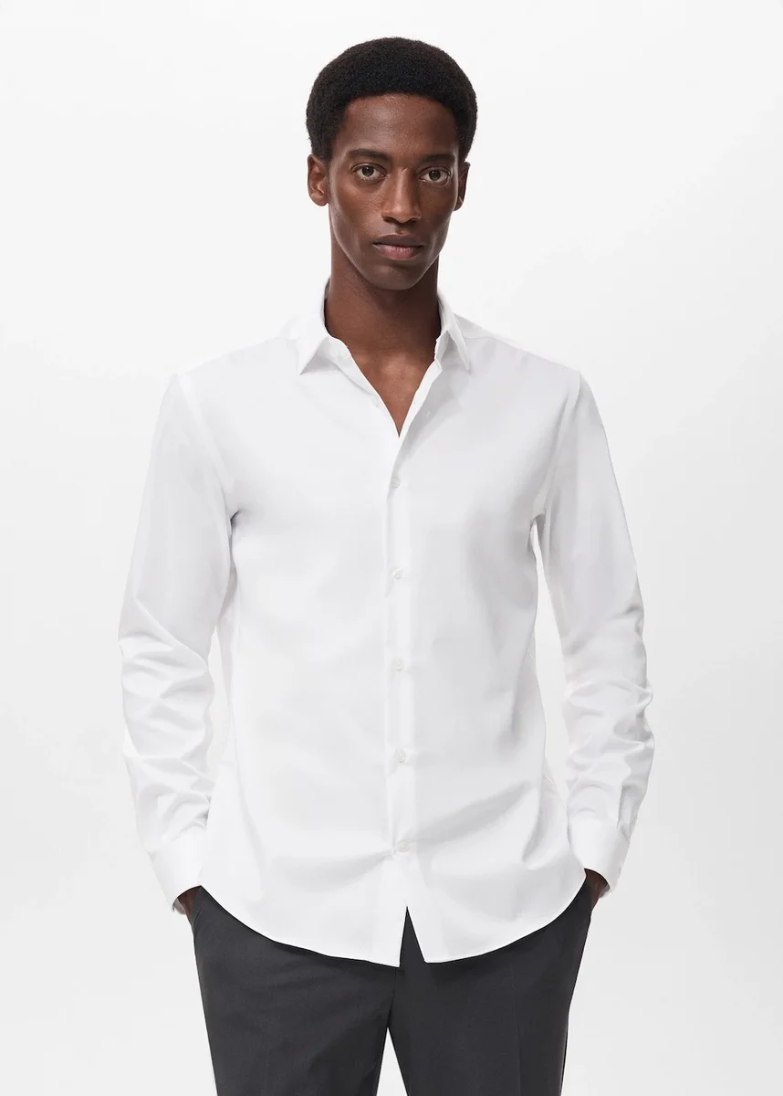 Tessuto misto cotone. Vestibilità regolare. Non stiro: capo che non richiede stiratura, realizzato in tessuto antirughe. Tessuto Comfort Stretch: offre libertà di movimento e ritorna facilmente alla sua forma originale. Tessuto termoregolatore. Collo classico. Maniche lunghe con polsini abbottonati. Chiusura frontale con bottoni.