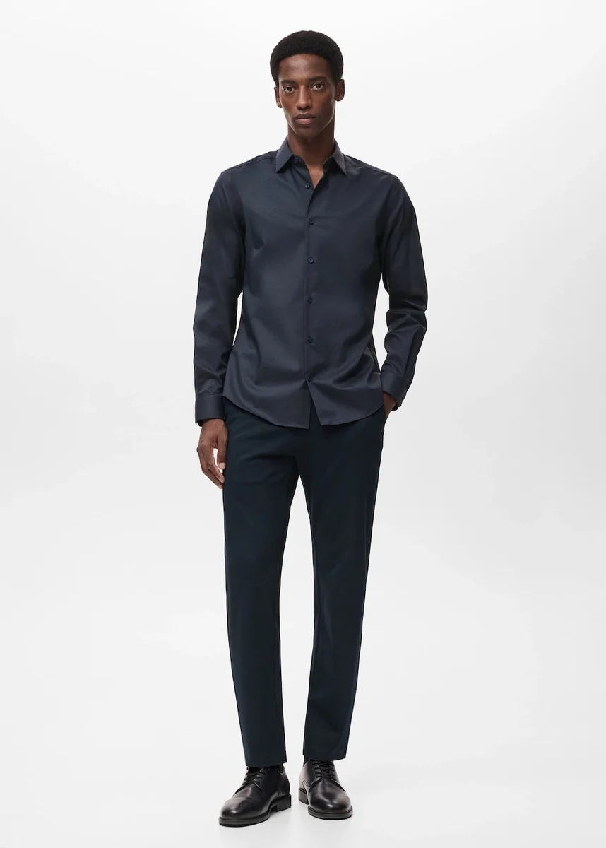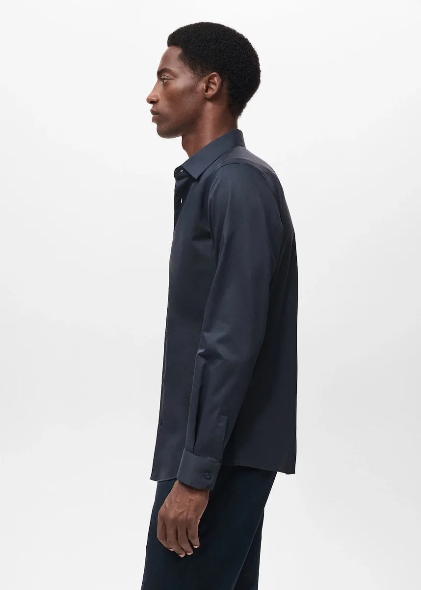 Tessuto misto cotone. Vestibilità regolare. Non stiro: capo che non richiede stiratura, realizzato in tessuto antirughe. Tessuto Comfort Stretch: offre libertà di movimento e ritorna facilmente alla sua forma originale. Tessuto termoregolatore. Collo classico. Maniche lunghe con polsini abbottonati. Chiusura frontale con bottoni.