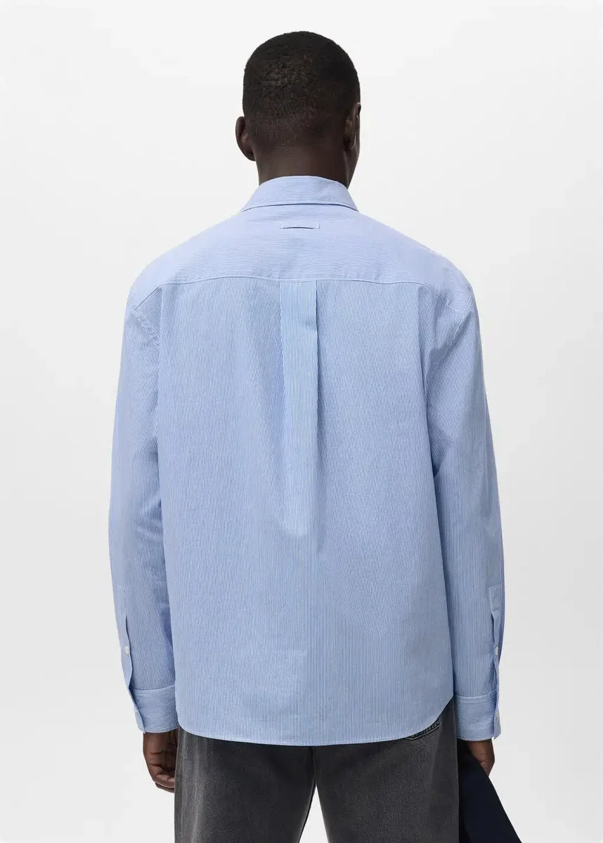 Vestibilità regolare. Tessuto misto cotone. Design a righe. Colletto camicia. Maniche lunghe con polsini abbottonati. Chiusura frontale con bottoni. Orlo arrotondato