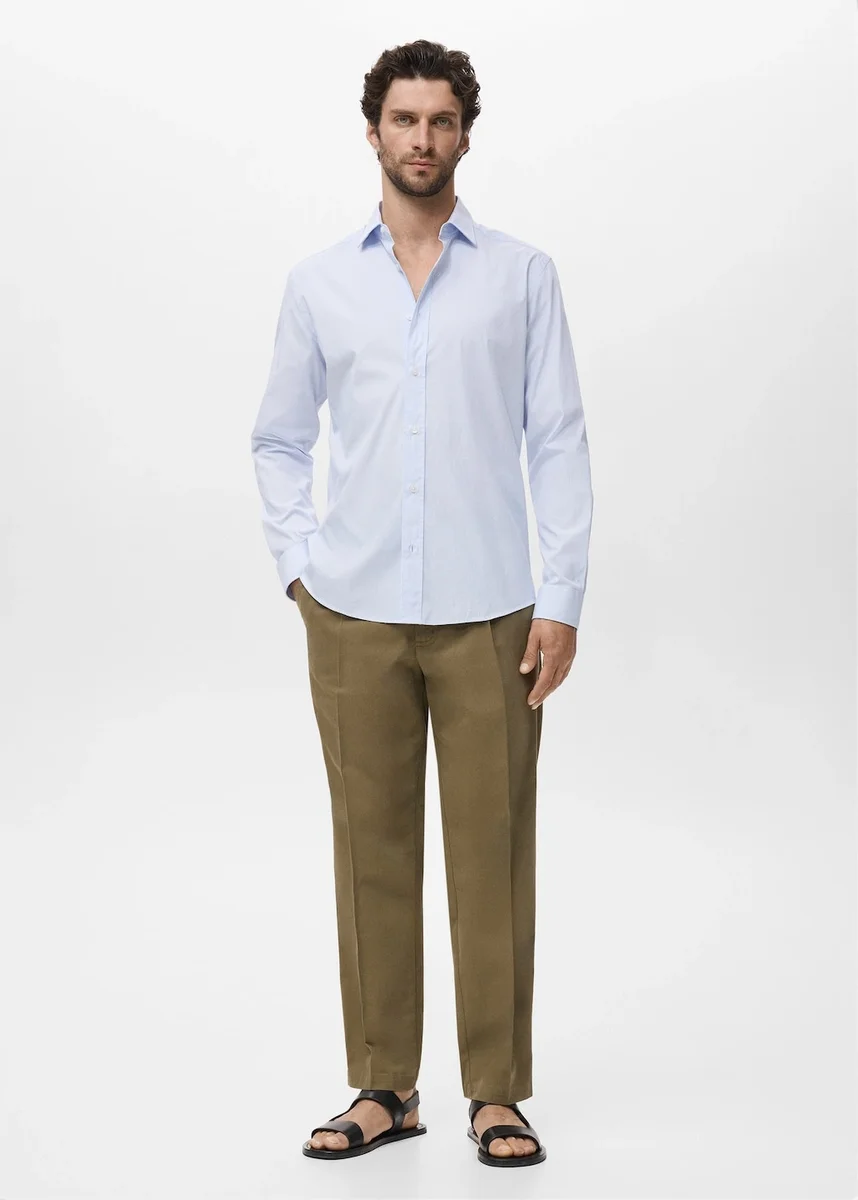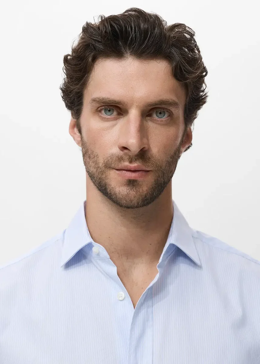 100% cotone. Stampa a righe. Vestibilità regolare. Collo camicia con revers. Collo camicia. Maniche lunghe con polsini abbottonati. Chiusura frontale con bottoni