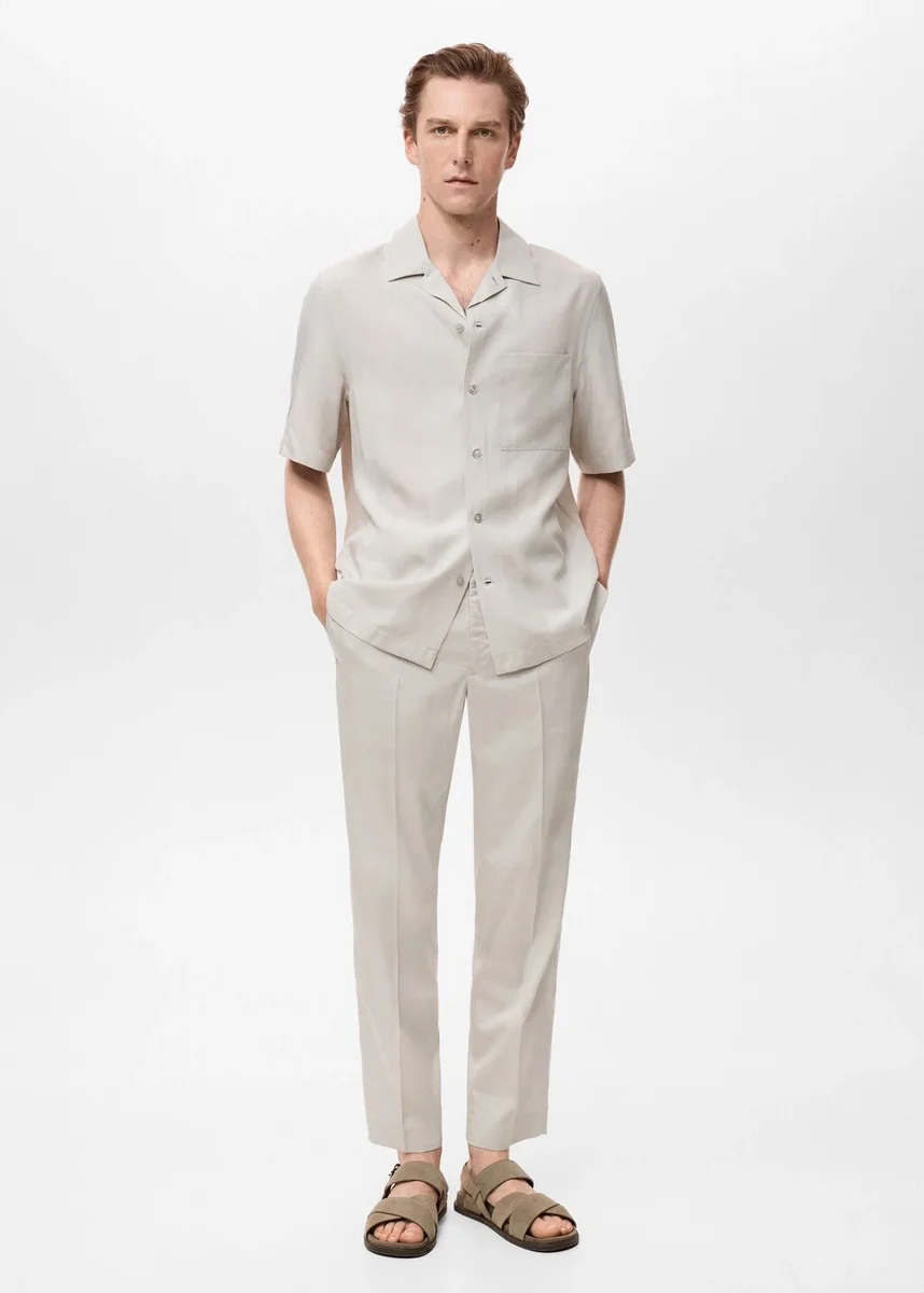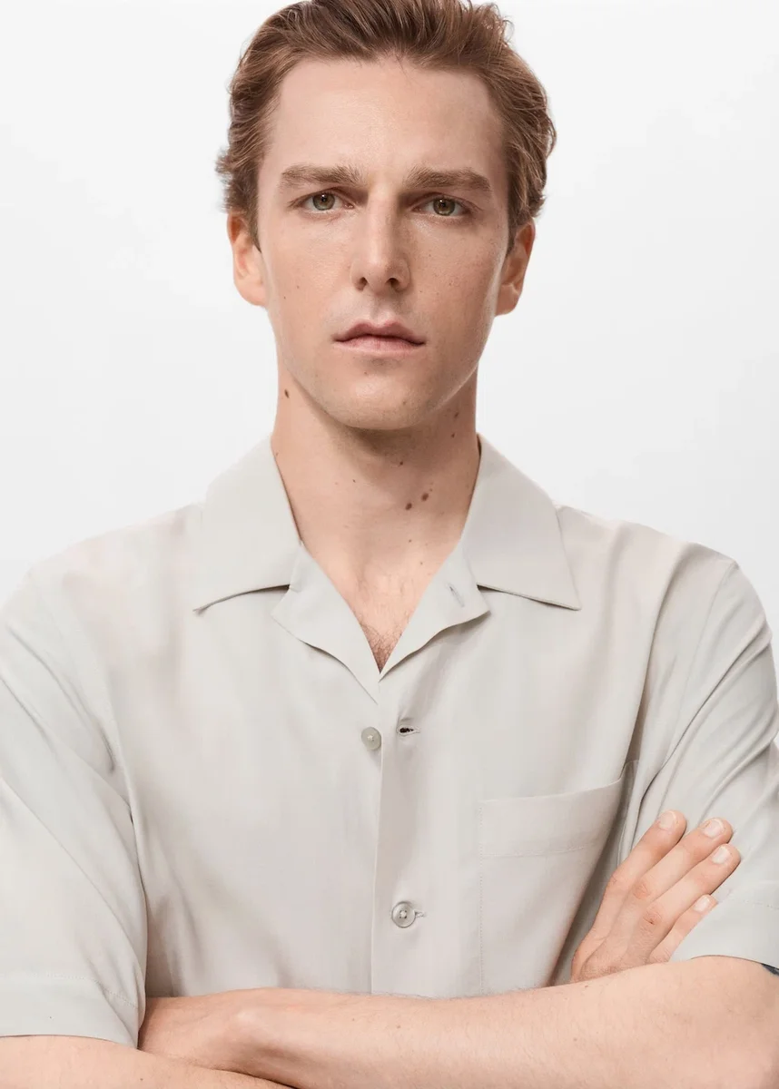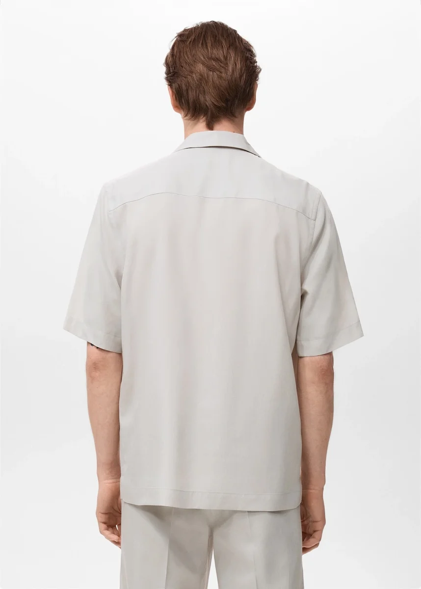 Vestibilità regolare. Colletto bowling. Chiusura con bottoni sul davanti. Maniche corte. Tasca applicata sul petto. Orlo dritto. Tessuto in lyocell.