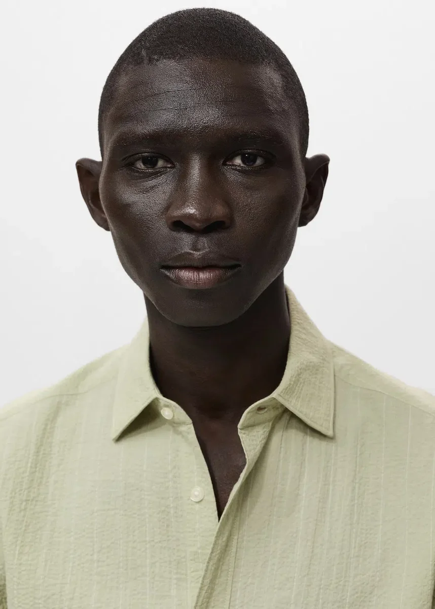 Tessuto in cotone. Silhouette regolare. Testurizzata. Vestibilità regolare. Stampa a righe. Colletto camicia. Maniche lunghe con polsini a sbuffo. Chiusura con bottoni sul davanti.