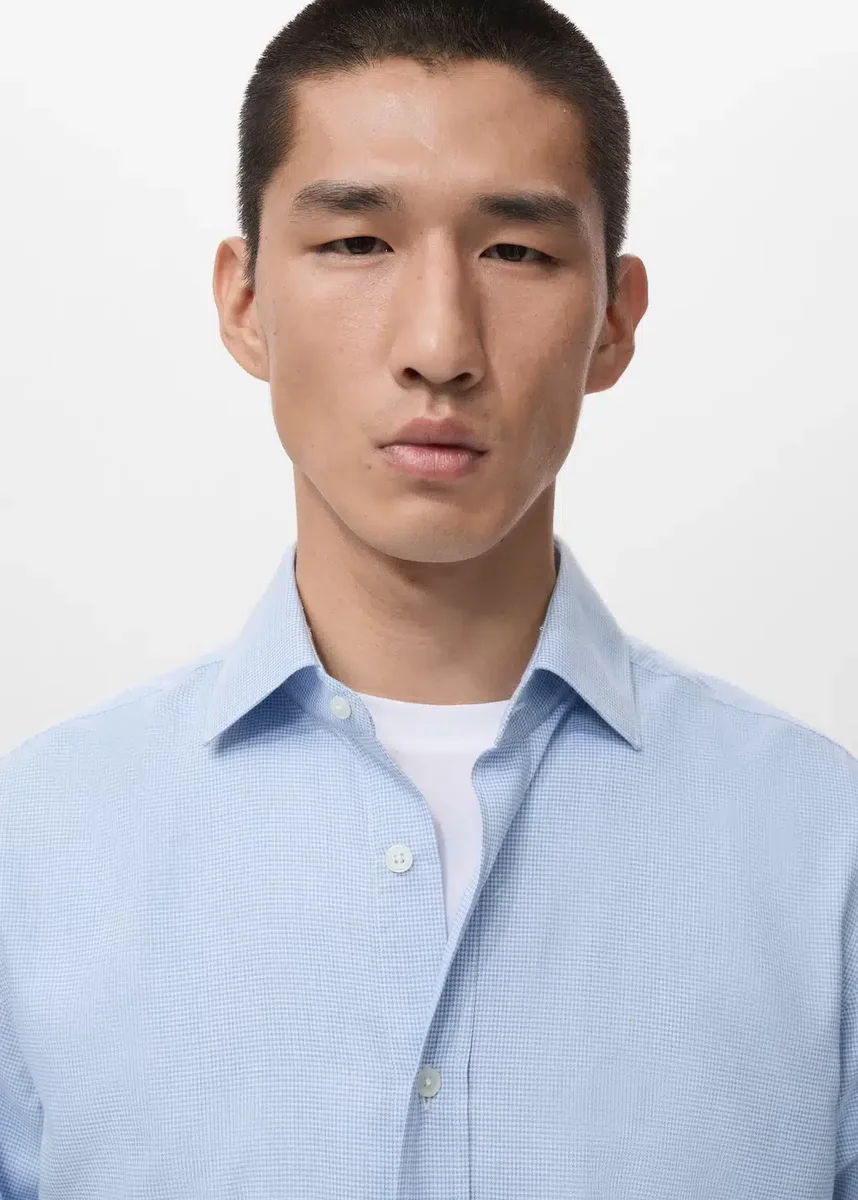 Tessuto 100% cotone. Vestibilità regolare. Tessuto in flanella. Micro stampa. Colletto camicia. Chiusura frontale con bottoni. Polsini con bottoni. Orlo arrotondato
