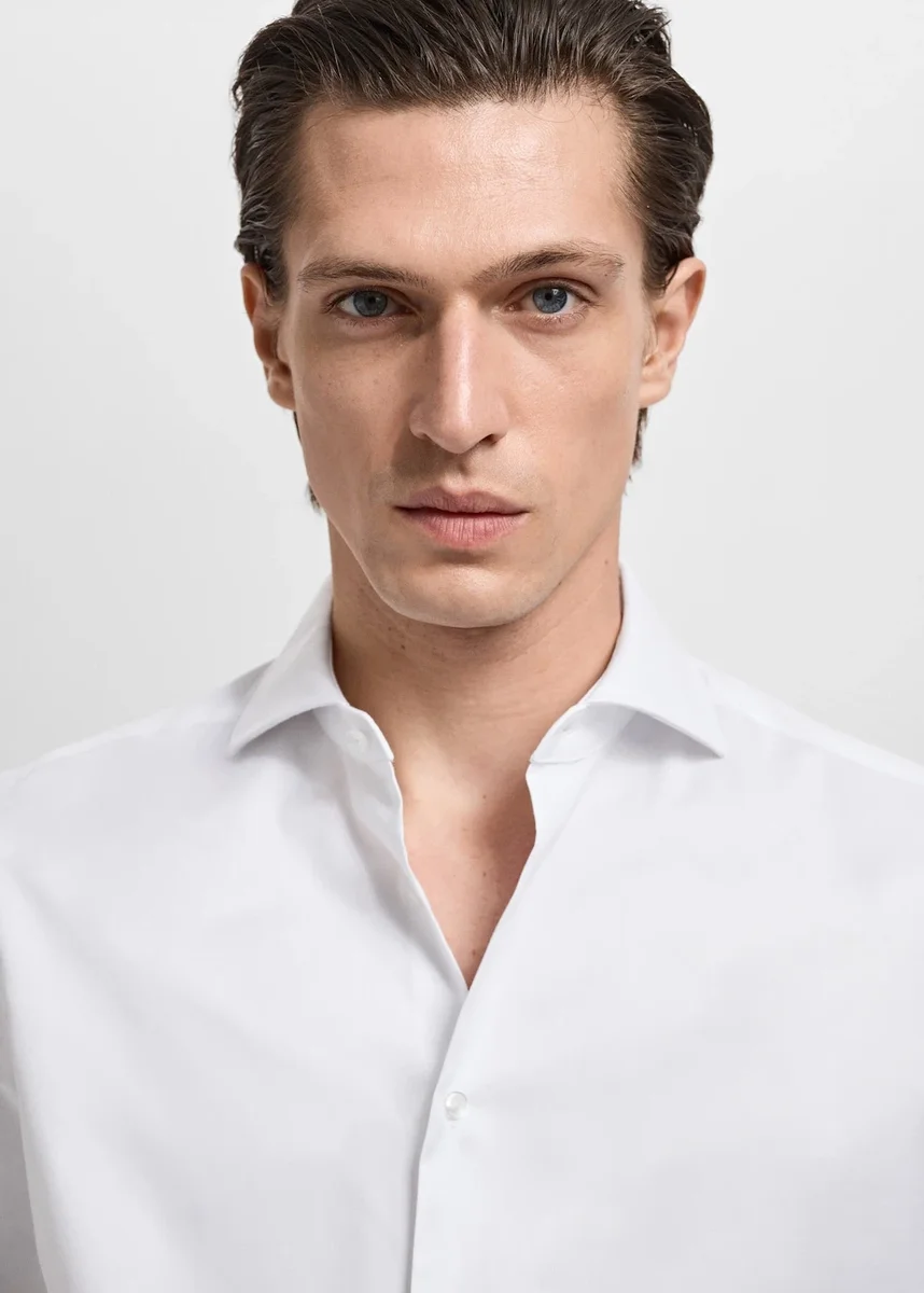 Chiusura frontale. Vestibilità slim. Twill di cotone. Colletto alla coreana. Chiusura frontale con bottoni. Doppio polsino con gemelli incorporati. Manica lunga con bottoni. Orlo arrotondato.