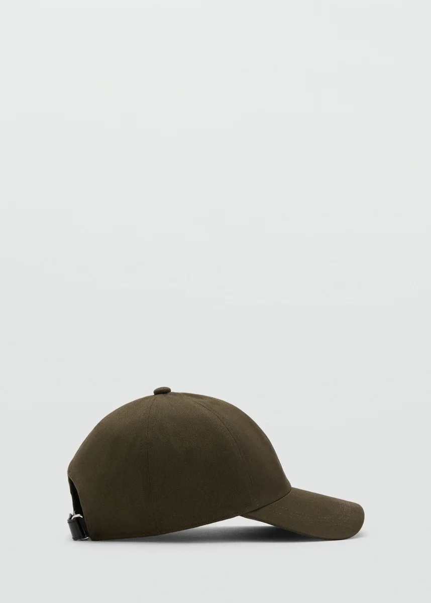 100% cotone. Con visiera. Regolazione con chiusura a strappo sul retro.