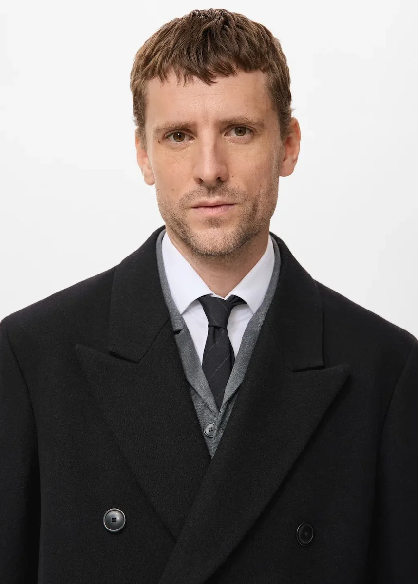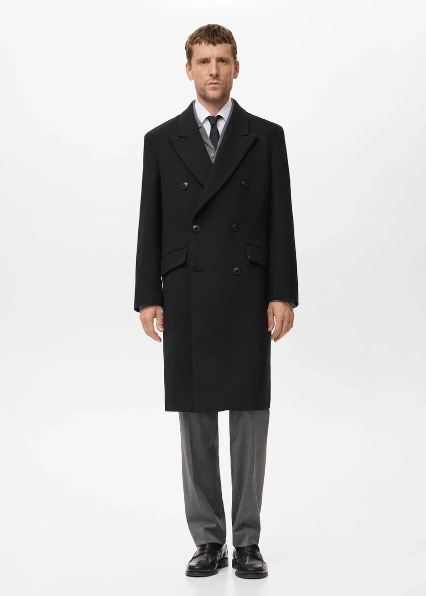 Collezione Party. Silhouette dritta. Tessuto misto lana. Design con chiusura frontale doppiopetto. Collo con revers a dente. Due tasche con patta sul davanti. Maniche lunghe con polsini abbottonati. Apertura nella parte centrale dell’orlo. Fodera interna.