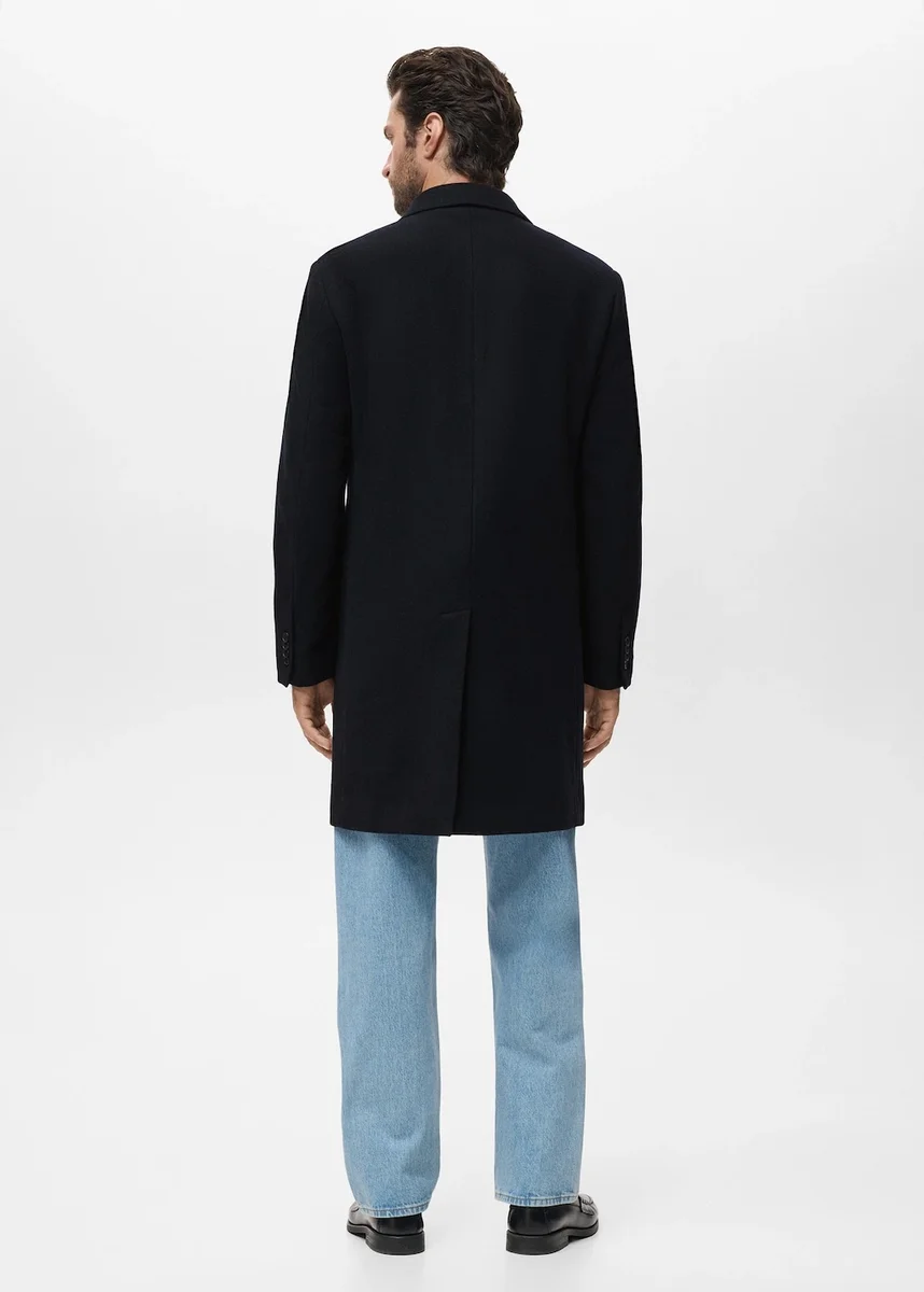 Silhouette dritta. Tessuto misto lana. Revers classico. Due tasche interne. Due tasche laterali a filetto. Tasca a filetto sul petto. Maniche lunghe con polsini abbottonati. Spacco posteriore sull’orlo. Fodera interna. Chiusura con bottoni.