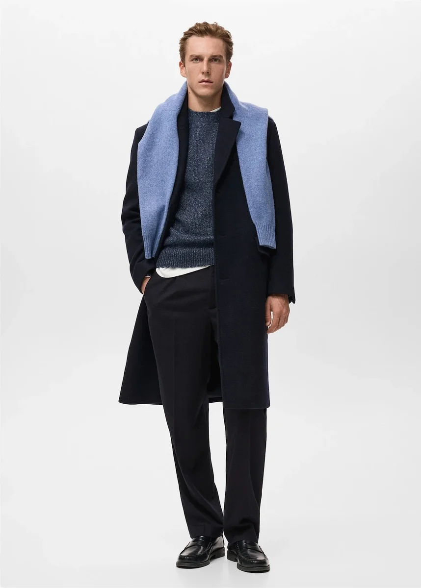 Tessuto misto lana. Modello lungo. Collo con revers classico. Chiusura con tre bottoni. Polsini con bottoni. Due tasche con patta sul davanti. Apertura al centro dell’orlo. Fodera interna