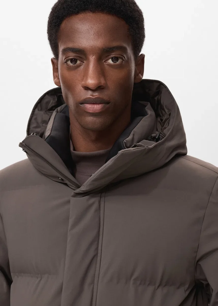 Design trapuntato. Silhouette dritta. Capo realizzato in tessuto idrorepellente. THERMOLITE®: tessuto che, grazie alla sua tecnologia delle fibre, offre isolamento termico e traspirabilità. Antivento: questo materiale resistente offre protezione dal vento per un maggiore comfort nella vita all’aria aperta. Comfort: tessuto elasticizzato in orizzontale e verticale per un maggiore comfort. Cappuccio con coulisse. Due tasche frontali con chiusura a bottone a pressione. Tasca interna con chiusura a zip. Chiusura frontale con zip e bottoni a pressione. Maniche lunghe. PRESTAZIONI: una collezione di capi realizzati con fibre tecniche. Questa selezione offre un’ampia gamma di caratteristiche avanzate come tessuti bi-elasticizzati e proprietà di asciugatura rapida, facile stiratura, termoregolazione, traspirabilità o idrorepellenza, organizzate in tre categorie generali: termoregolazione, funzionalità e comfort.