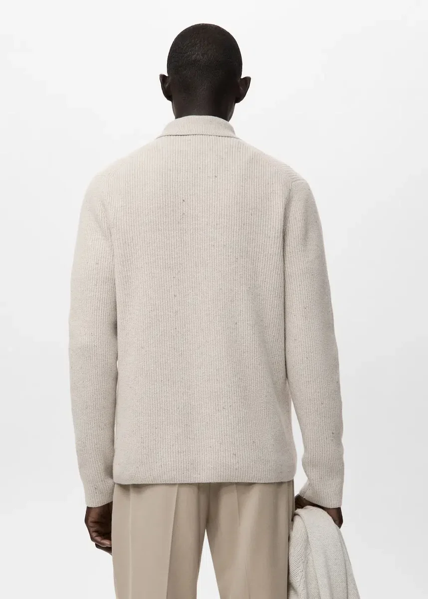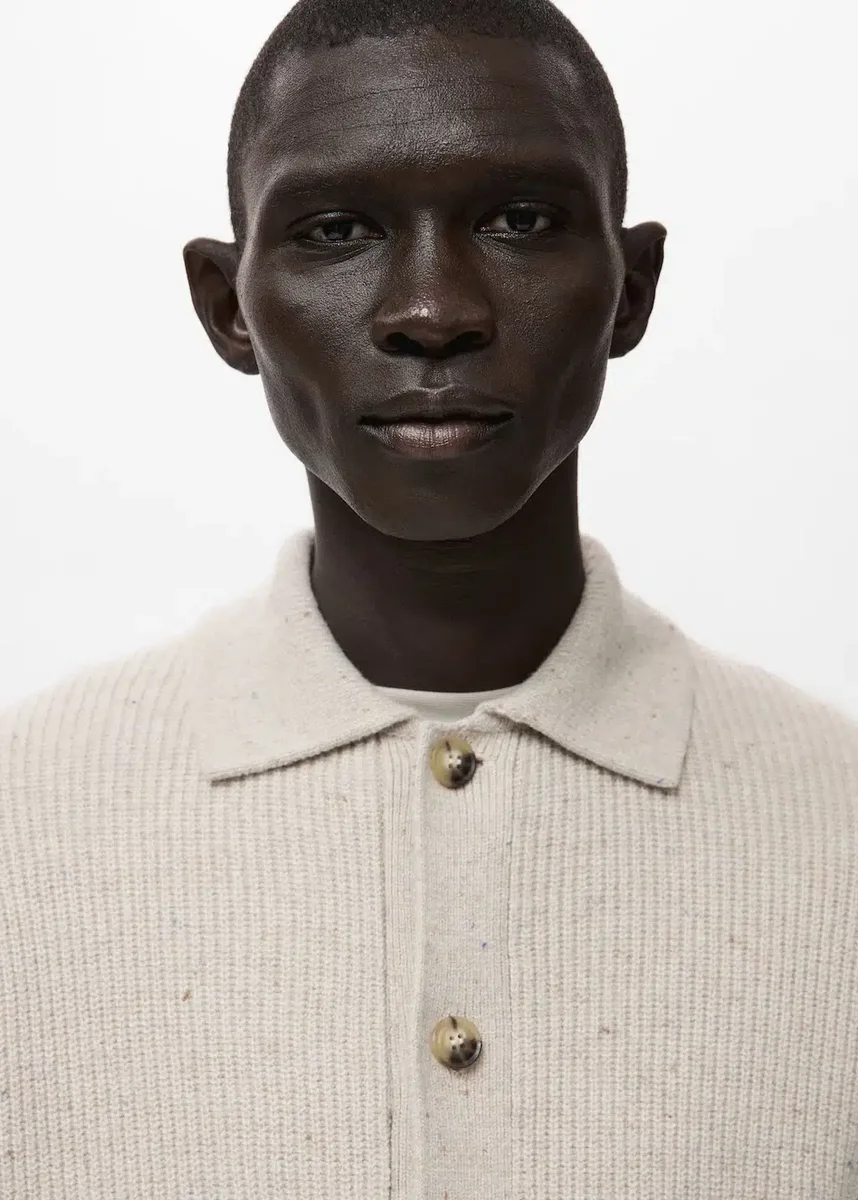 Esclusiva online. Tessuto misto lana. Design a costine. Vestibilità regolare. Collo polo. Maniche lunghe. Chiusura frontale con bottoni.