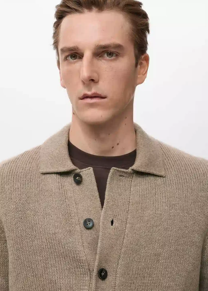 Tessuto misto lana. Vestibilità regolare. Colletto camicia. Polsini e orlo a costine. Chiusura frontale con bottoni
