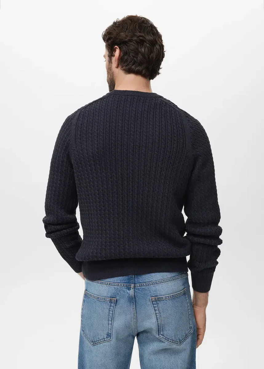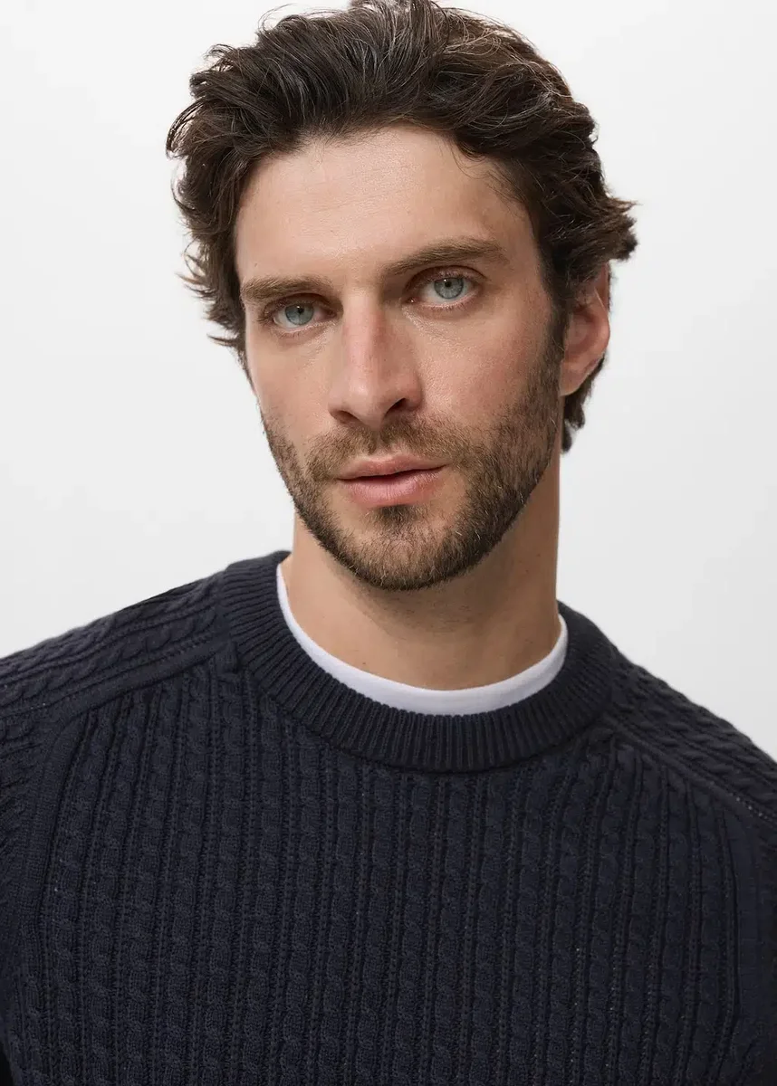 Tessuto 100% cotone. Modello dritto. Maglia spessa. Design intrecciato. Girocollo. Maniche lunghe. Orlo dritto. Finiture a costine su maniche e orlo.