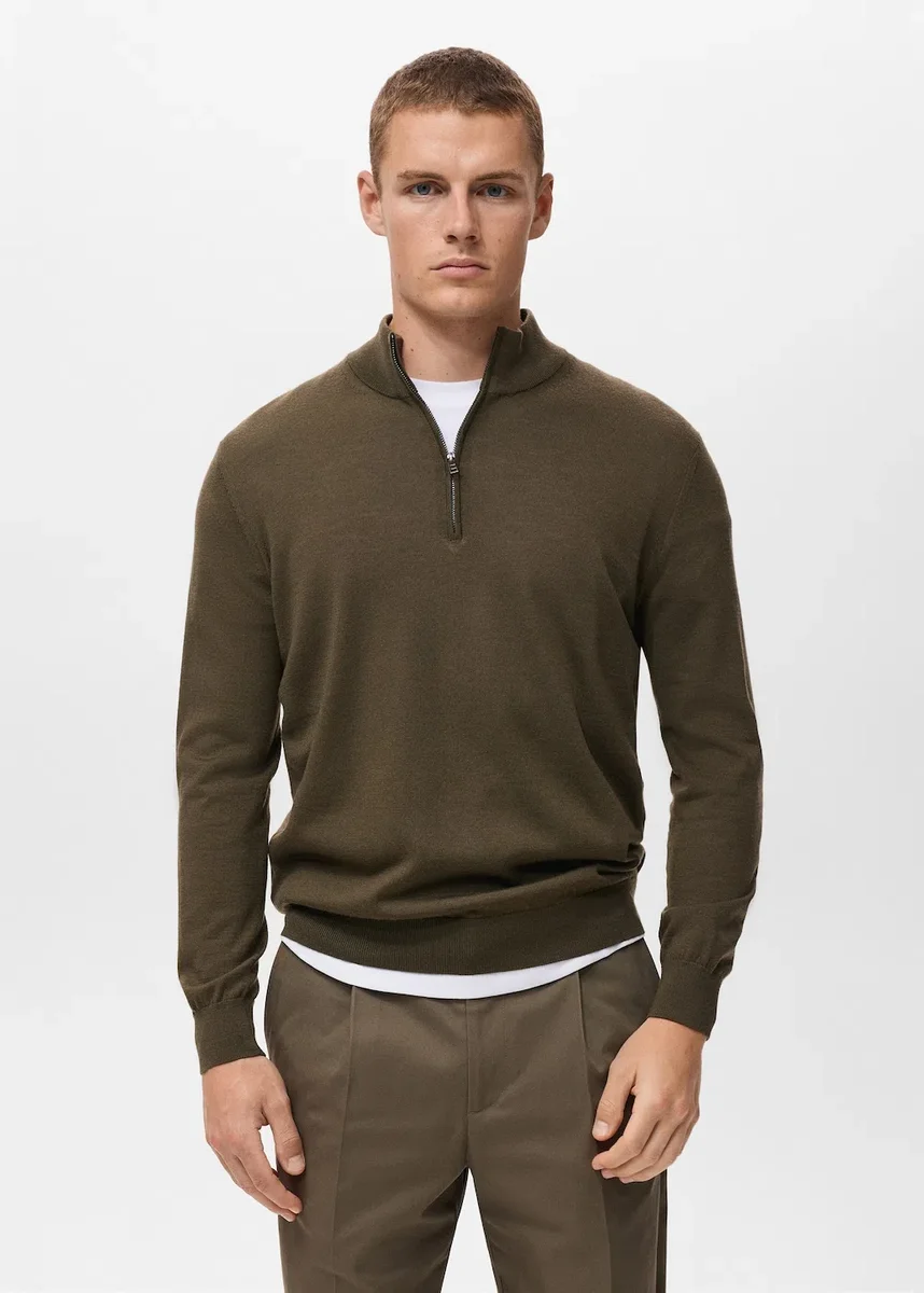 Vestibilità regolare. 100% lana merino. Tessuto a maglia fine. Collo Perkins con chiusura a zip. Collo, maniche e orlo a costine.