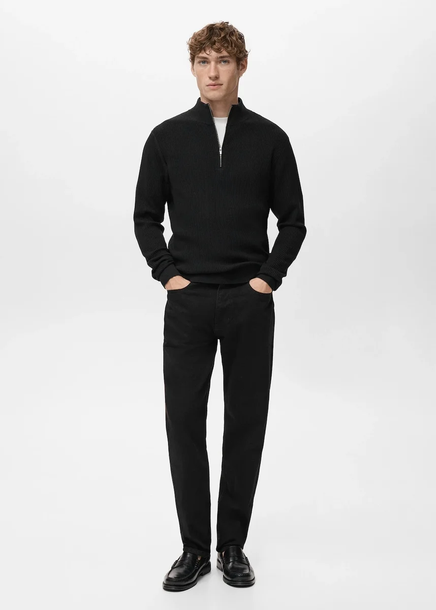 Maglione a coste con collo con zip