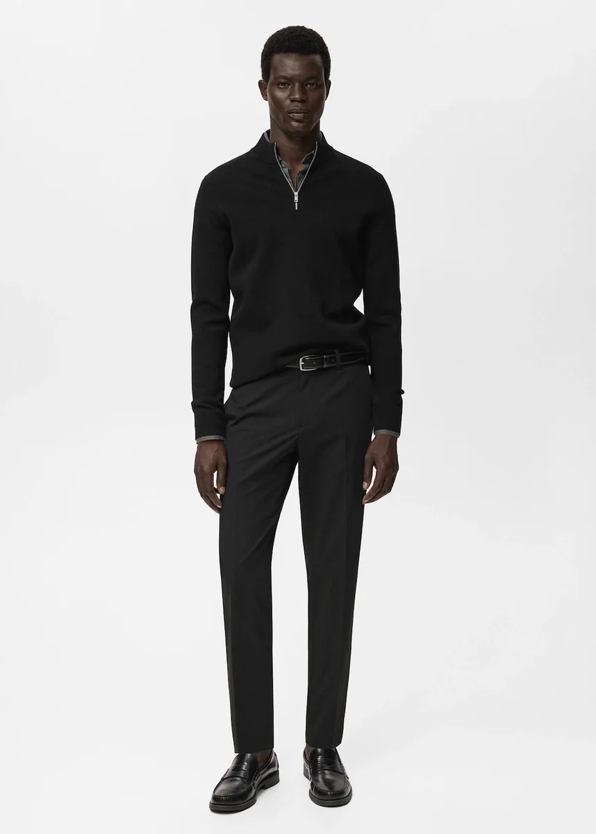 Tessuto a maglia fine. Vestibilità regolare. Collo Perkins con chiusura a zip. Collo, maniche e orlo a costine.
