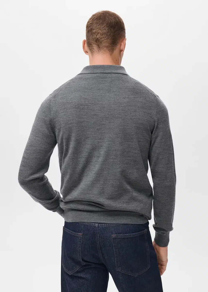 Vestibilità regolare. 100% lana merino. Maglia fine. Collo polo con chiusura a bottoni. Maniche lunghe. Maniche non rifinite. Polsini elasticizzati.