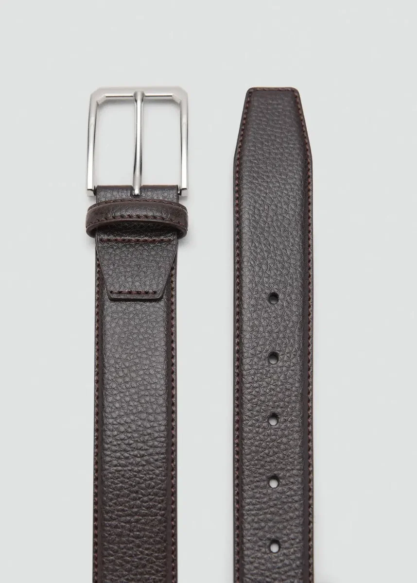 100% pelle bovina. Pelle molto liscia. Chiusura con fibbia metallica quadrata. Orlo dritto con dettagli cuciti. Perforazione per la regolazione libera della misura nei negozi MANGO