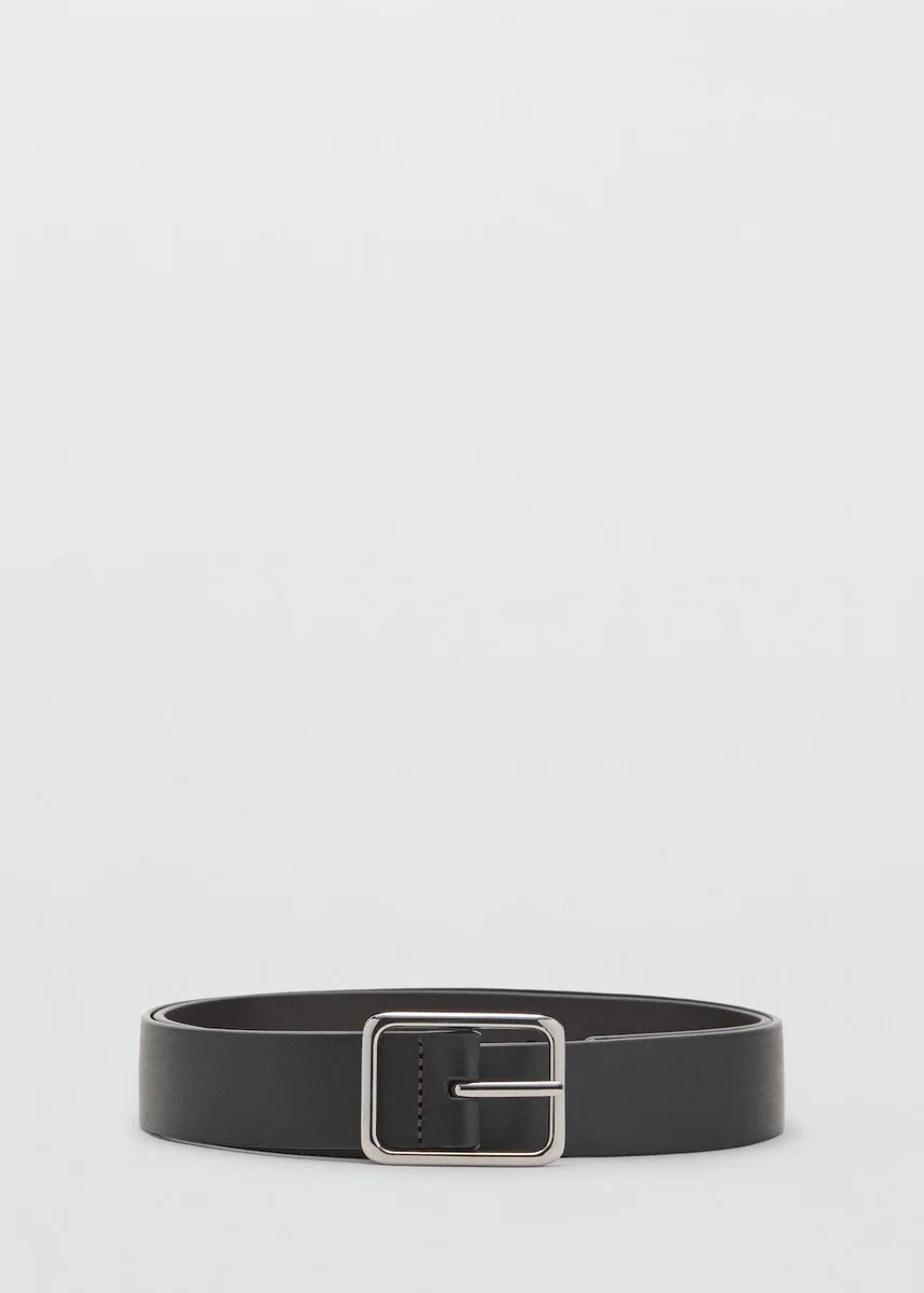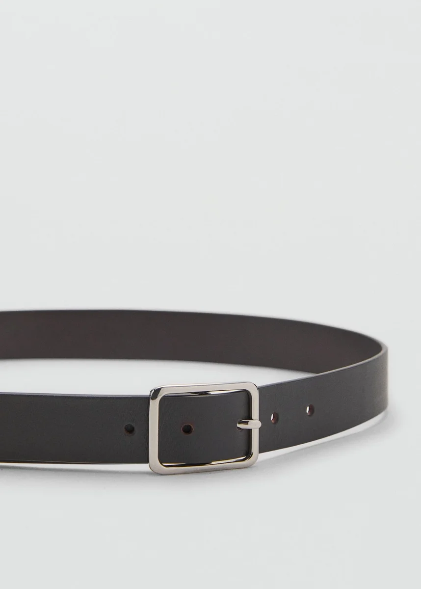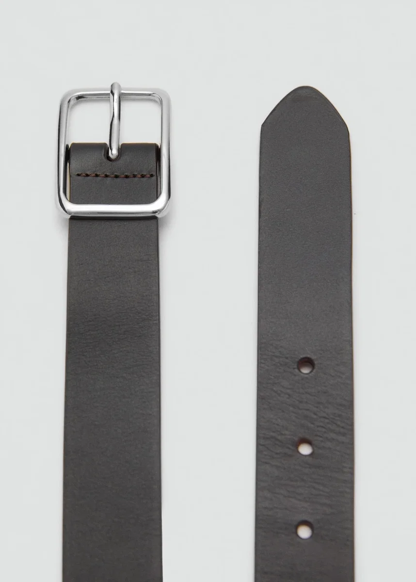 100% pelle bovina. Chiusura con fibbia metallica quadrata. Dettagli cuciti a punto indietro. Perforazione per la regolazione libera della misura nei negozi MANGO.